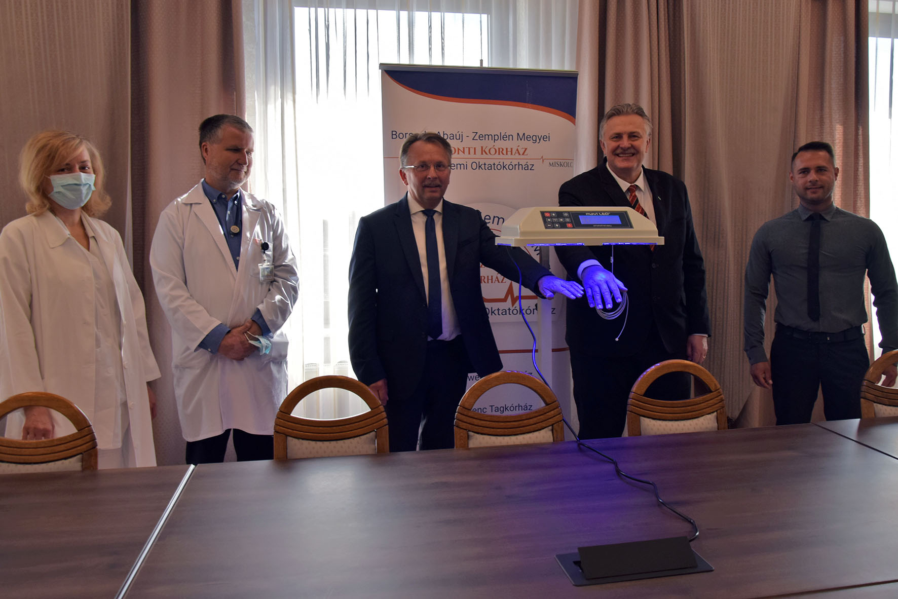 Az egyesület még decemberben kereste meg Veres Pált, a polgármester pedig az általuk kért teljes összeget a rendelkezésükre bocsátotta. A kék lámpát csütörtökön adták át a B.-A.-Z. Megyei Központi Kórház koraszülött-újszülöttpatológiai osztályának. A korszerű, a csecsemők gyógyításában nélkülözhetetlen eszközt dr. Nagy Gábor orvosigazgató, Dr. Hauser Péter Ph.D., a GYEK vezető főorvosa és dr. Szűcs Ildikó, a koraszülött-újszülöttpatológiai osztály osztályvezető főorvosa vették át. Egy másik ugyanilyen eszköz beszerzéséhez pedig miskolci és borsodi vállalkozók adták össze a szükséges pénzt, így a koraszülött osztályon mostantól két új kék lámpával több szolgálja az újszülöttek gyógyulását.