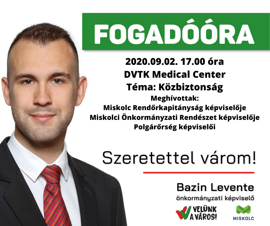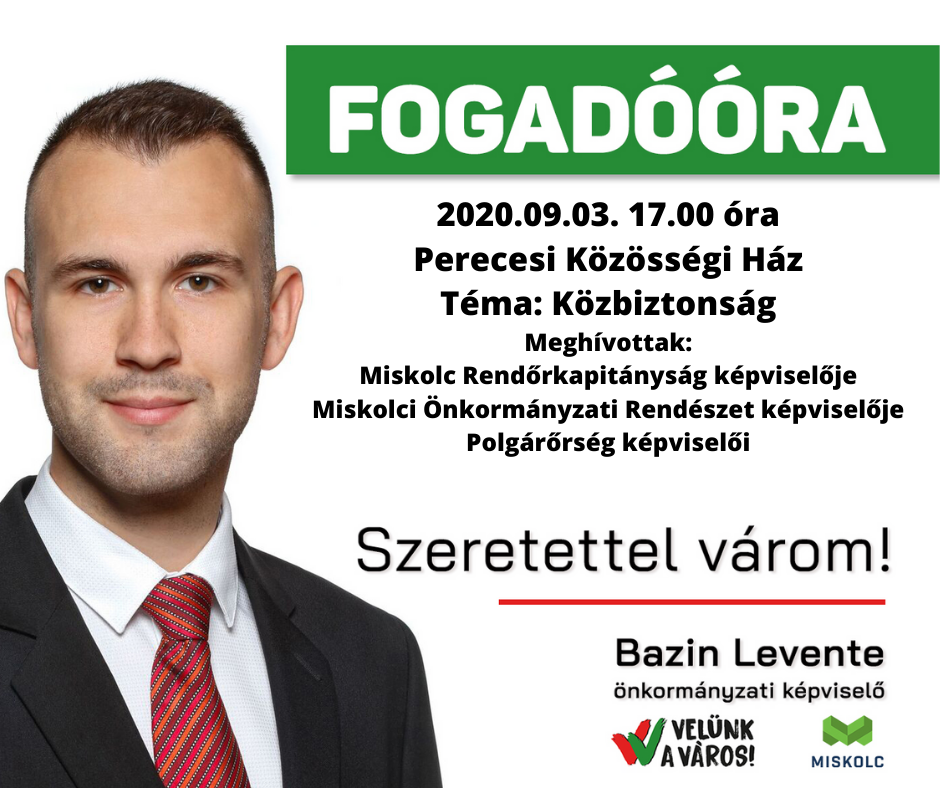 A 16. önkormányzati választókerület képviselője fogadóórát tart 2020.09.02-án, valamint 2020.09.03-án