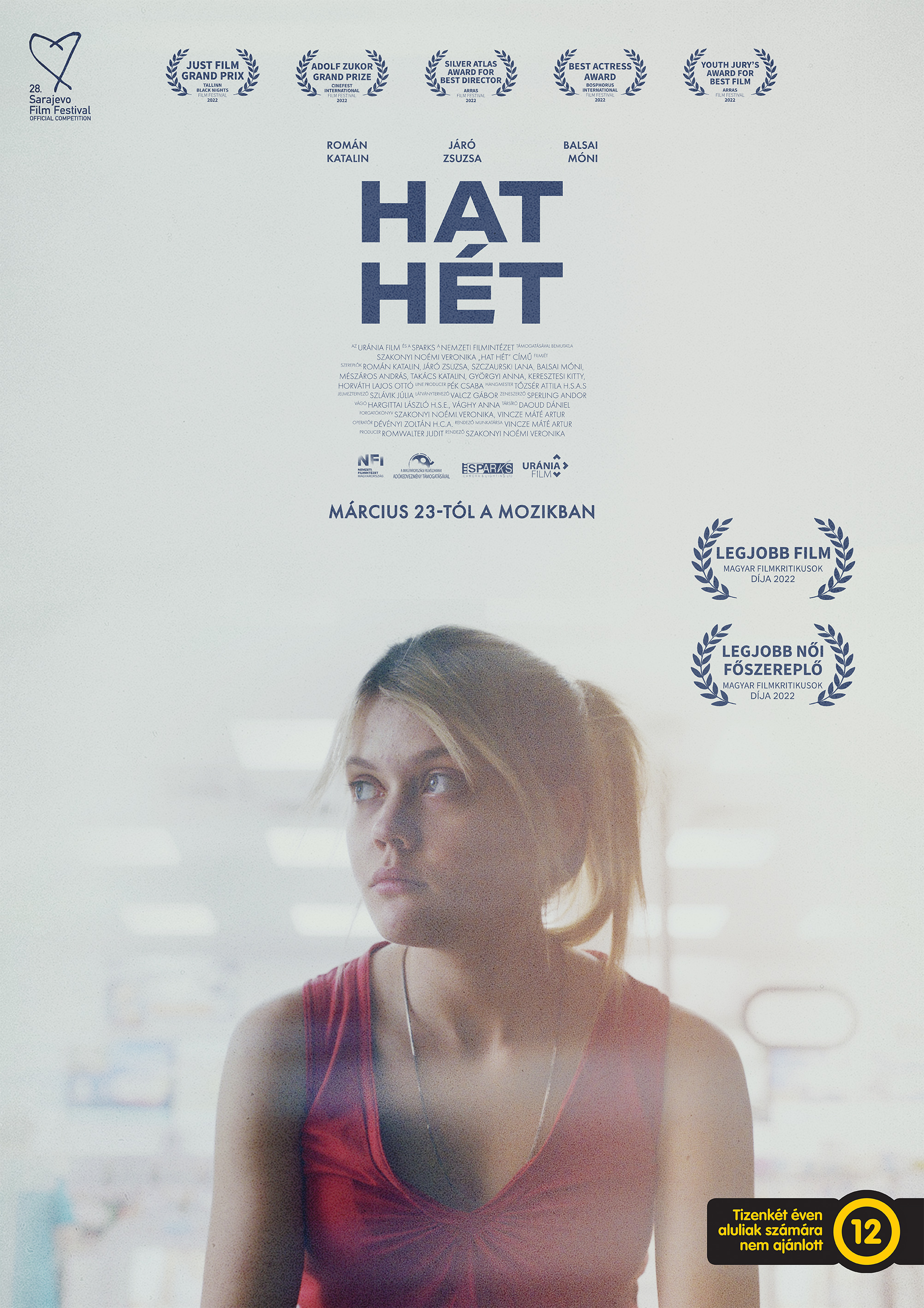 Szakonyi Noémi Veronika érzékeny és mélyreható drámája a rangos szarajevói filmfesztivál versenyprogramjában debütált, majd világszerte számos fesztiválon szerepelt sikerrel: a franciaországi Arras-ban a legjobb rendezés és a legjobb ifjúsági film díjával ismerték el, a történet főhősét alakító Román Katalin pedig a törökországi Boszporusz Filmfesztiválon – élete első nagyjátékfilm főszerepével – elnyerte a legjobb színésznő díját. Az 'A' kategóriás Tallinn Black Nights filmfesztiválon a Hat hét nyerte a Just Film versenyszekció nagydíját. 2023 februárjában a legjobb film és a legjobb női főszereplő kategóriájában is elnyerte a Magyar Filmkritikusok díját.