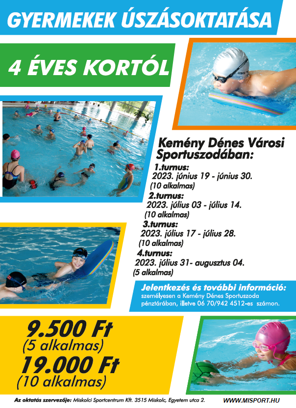 Úszásoktatás turnusok is kezdődnek a gyerekek részére június 19-től. Az egymást követő hétköznapokon szakképzett oktatók vezetésével a 10, illetve az 5 foglalkozásból álló képzések lehetőséget biztosítanak a már megszerzett úszástudás fejlesztésére, illetve az alapok elsajátítására.