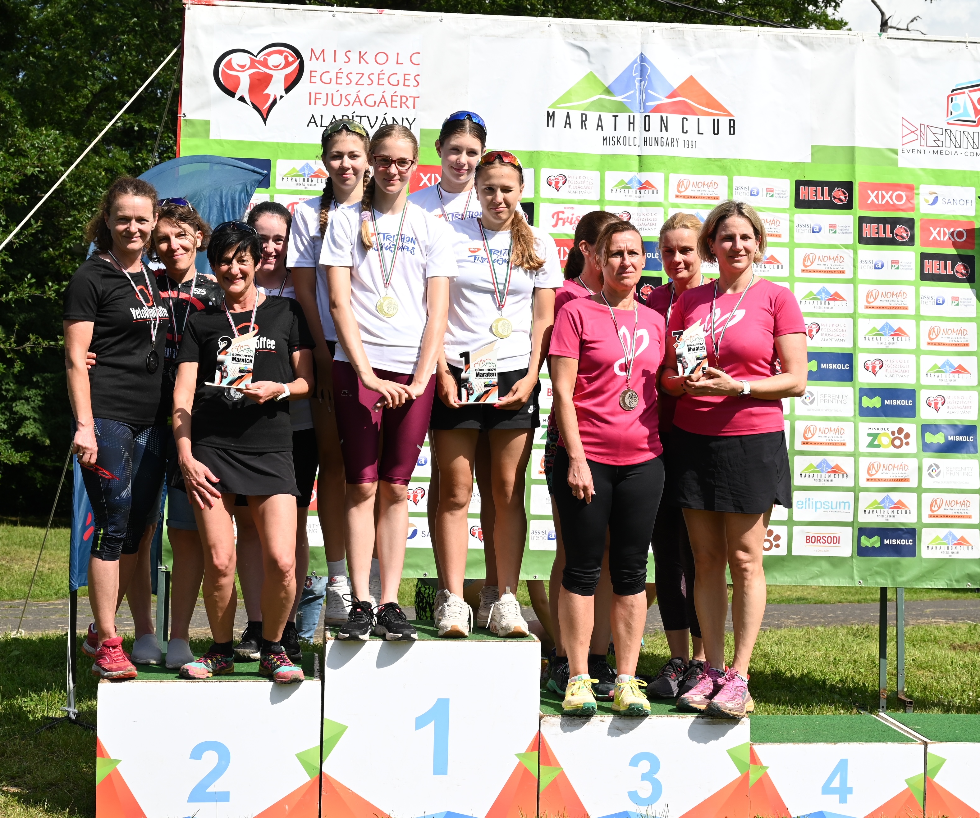 Női abszolút: 1. Tiszaújvárosi Triatlon Klub, 4:08:18, 2. VeloRunCoffee SE, 4:29:04, 3. Turbónyuszik, 5:17:05