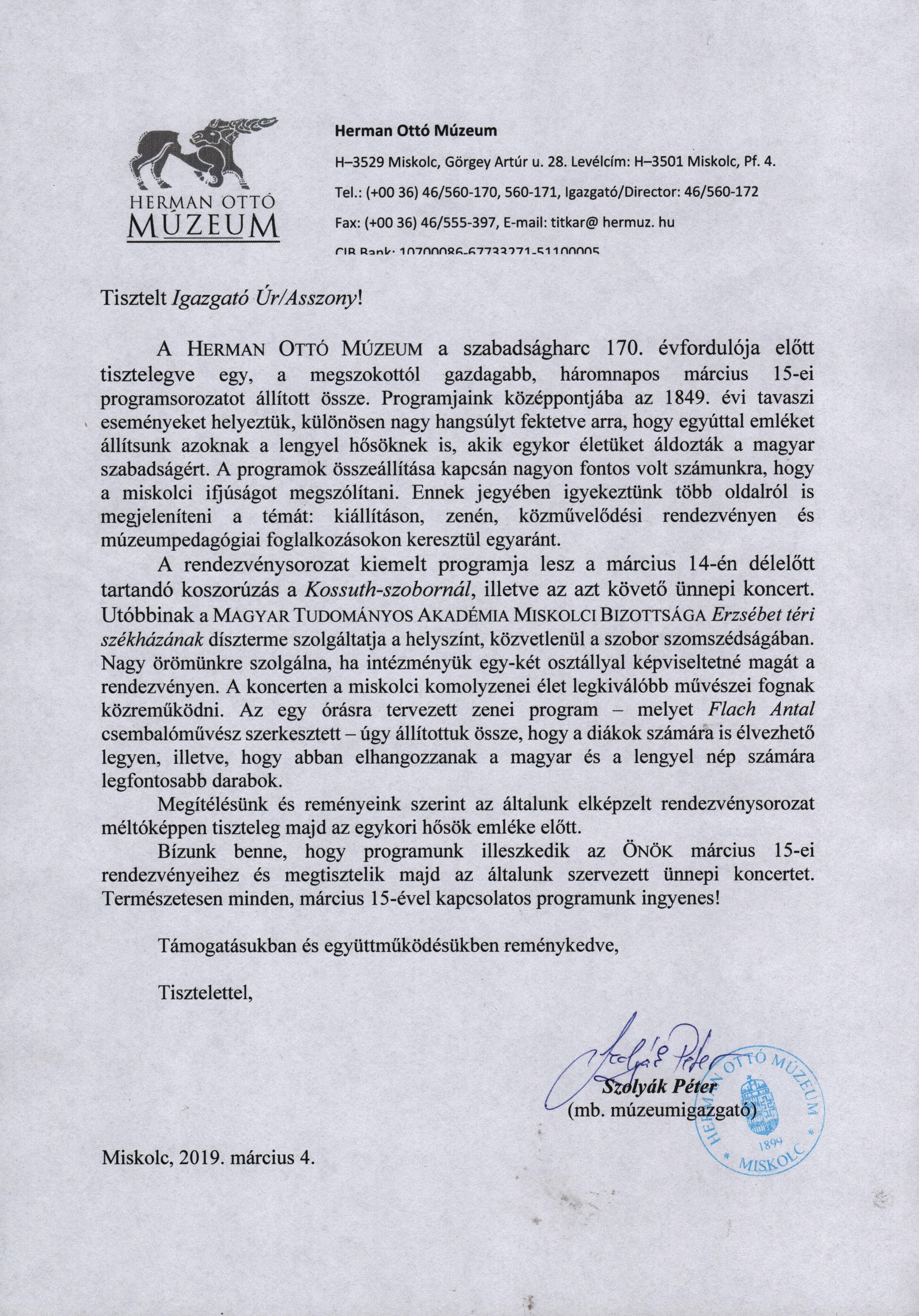A Herman Ottó Múzeum tisztelettel meghívja Önt és kedves családját a 1848/49-es magyar forradalom és szabadságharc 170. éfvordulójának emléket állító, három napos ünnepi rendezvénysorozatára, amelyet idén a lengyel-magyar barátság napja jegyében rezndez meg, tisztelegve az egykor hazánk szabadságáért életüket áldozó lengyel hősök emléke előtt