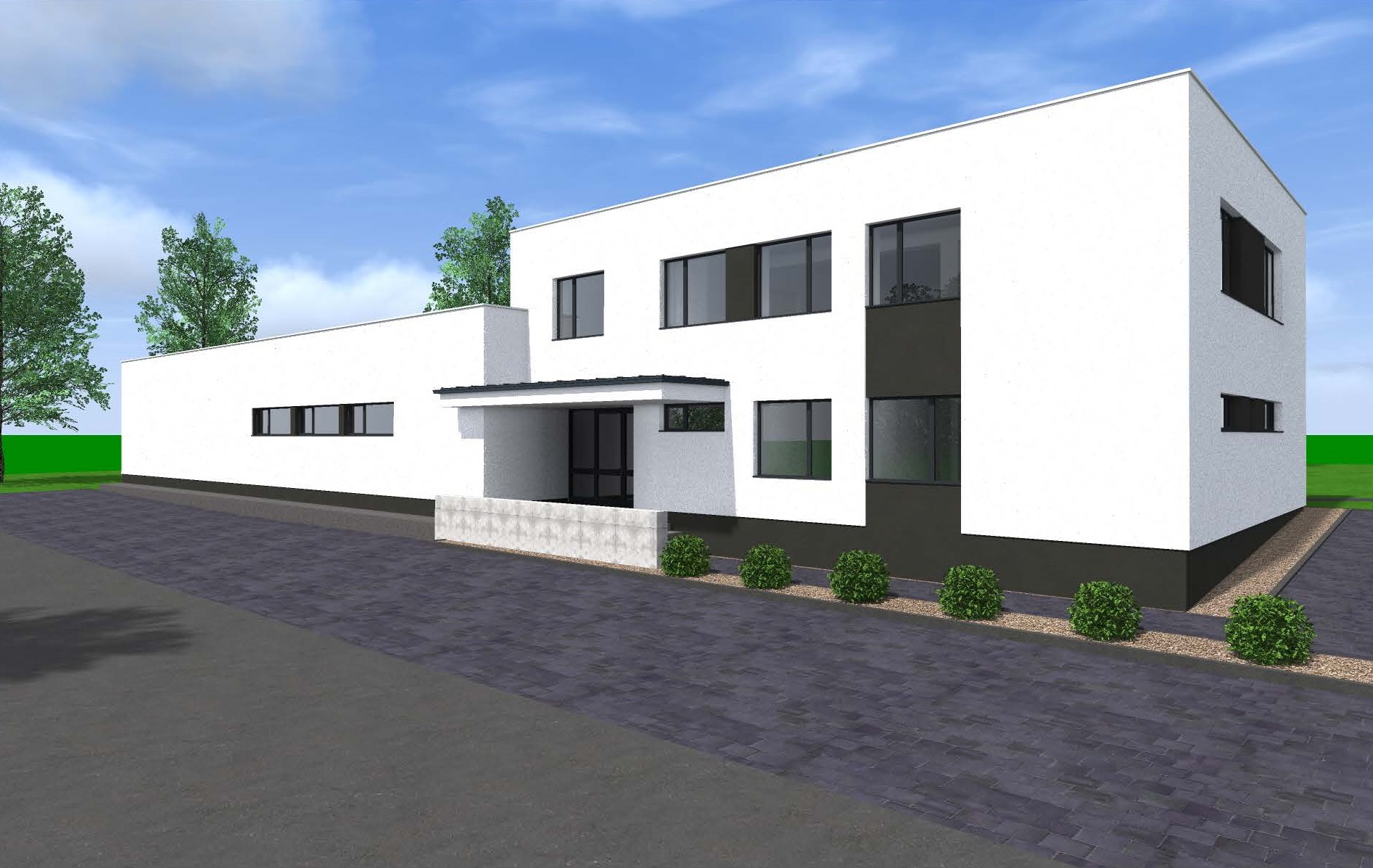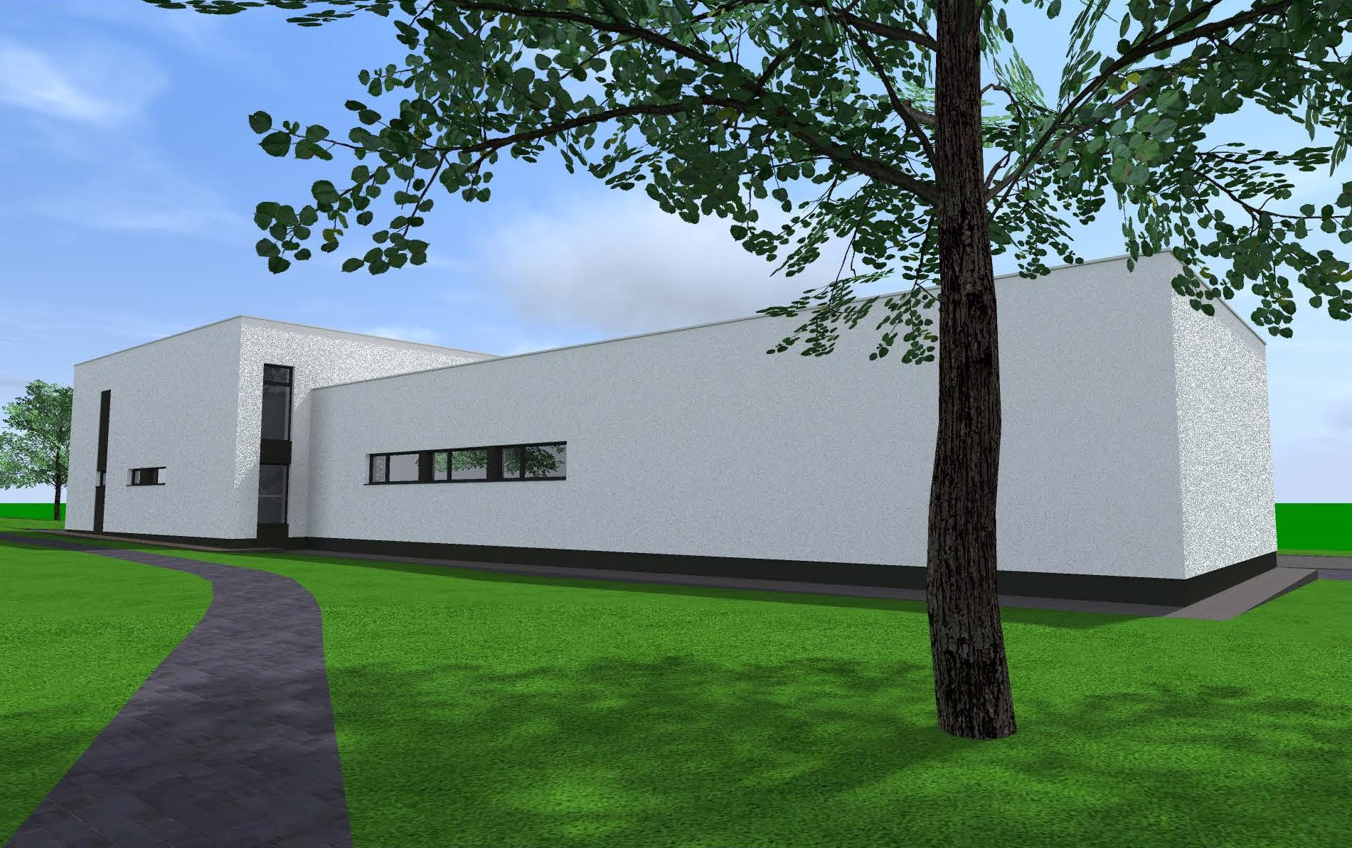 Az emeleti részen iroda és egy közel 100 m2-es edzőterem kap helyet. Az épület kiegészül egy parkolóval is.