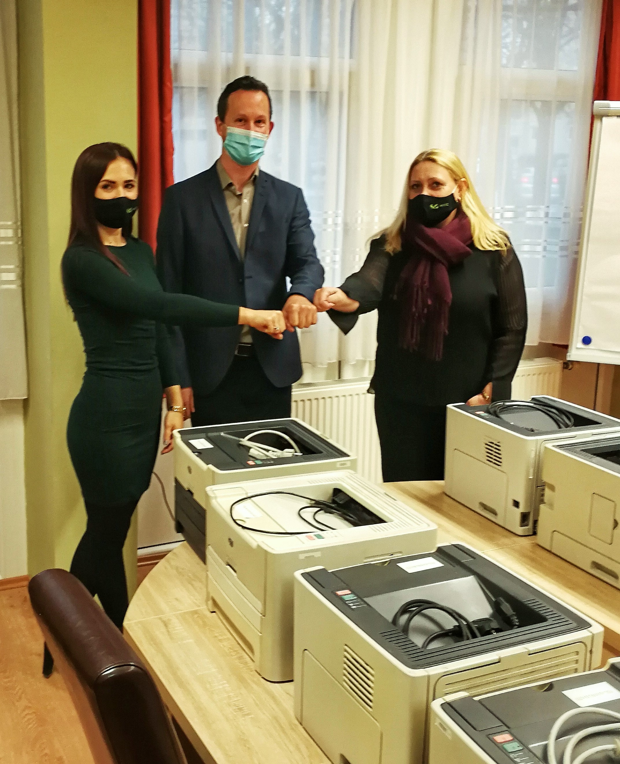 A MIVÍZ Kft. 10 db nyomtatót ajándékozott a Miskolci Egyesített Szociális, Egészségügyi és Gyermekjóléti Intézménynek (MESZEGYI), melyeknek átadására péntek délelőtt került sor a MESZEGYI központi irodaházában. A felajánlott eszközöket a cég munkatársai adták át, ezzel is segítve azt a felelősségteljes munkát, amit nap, mint nap ellátnak a szociális szférában dolgozók.