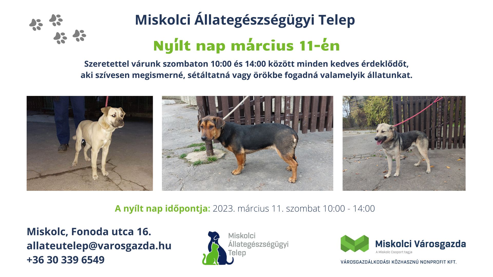 A Miskolci Állategészségügyi Telep következő nyílt napját 2023. március 11-én, szombaton, 10 és 14 óra között tartja a Fonoda u. 16. szám alatt.