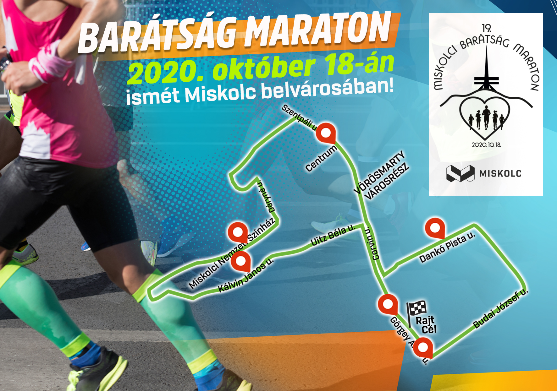 A Miskolc Egészséges Ifjúságáért Alapítvány és a Marathon Club közös rendezvényét négy egyéni távon (minimaraton, kismaraton, félmaraton, maraton) tartják meg, de lesz félmaratoni váltó, valamint két gyermekfutam is. Az előzetes nevezés már lezárult, de a helyszínen, a Generali Arénánál kialakítandó versenyközpontban október 17-én, szombaton 15.00-18.00, míg a verseny napján 9.30-11.30 között is lesz mód nevezni. (Információk, menetrend: http://maratonclubmiskolc.hu/content/19-miskolci-baratsag-maraton-20201018-versenykiiras).