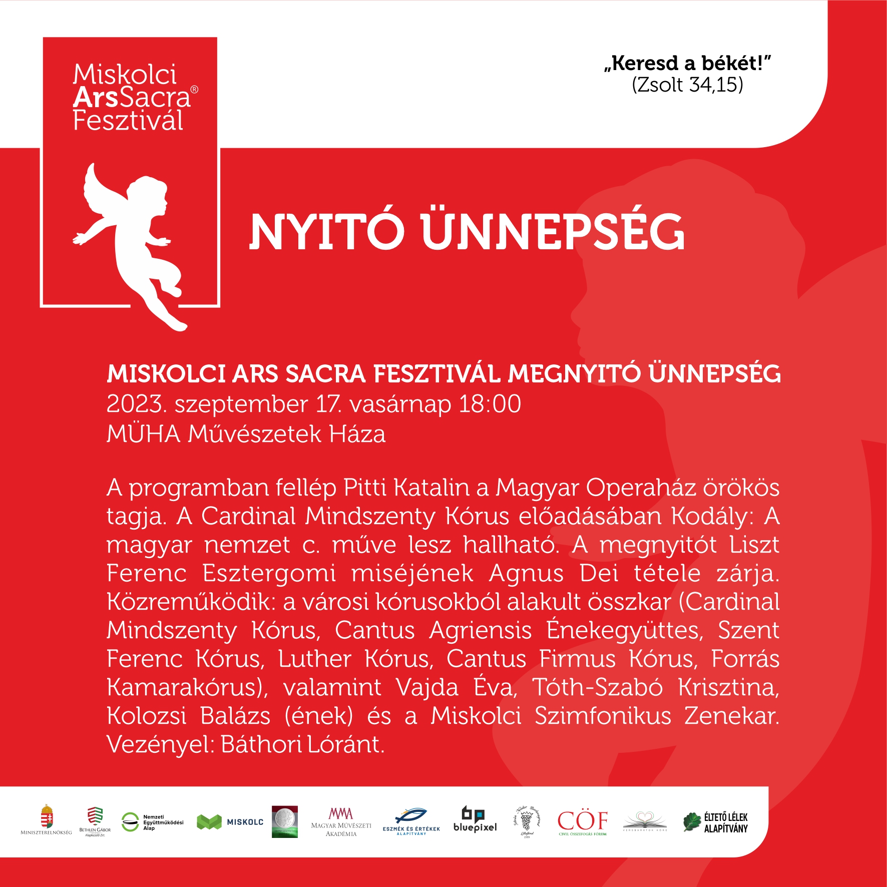 Gyorsan „megnőtt” az országos Ars Sacra Fesztiválhoz kapcsolódó miskolci seregszemle, amely a tavalyi kezdeményezést követően az idén több mint 40 programot kínál szeptember 16. és 24. között, ezek között különlegességeket is helyi kötődésű művészek közreműködésével fontos városi helyszíneken. Nagyszabású közösségi napok és zenei ősbemutatók szerveződnek, hangsúlyos lesz a zene, az irodalom, a képzőművészet. Mintegy 400 fellépő színesíti a művészetével a programot. A Miskolci Ars Sacra Fesztivál szervezője az Éltető Lélek Alapítvány, amely törekvésében Miskolc MJV támogatását is maga mellett tudhatja. A fesztivál fővédnöke Dr. Ternyák Csaba egri érsek.