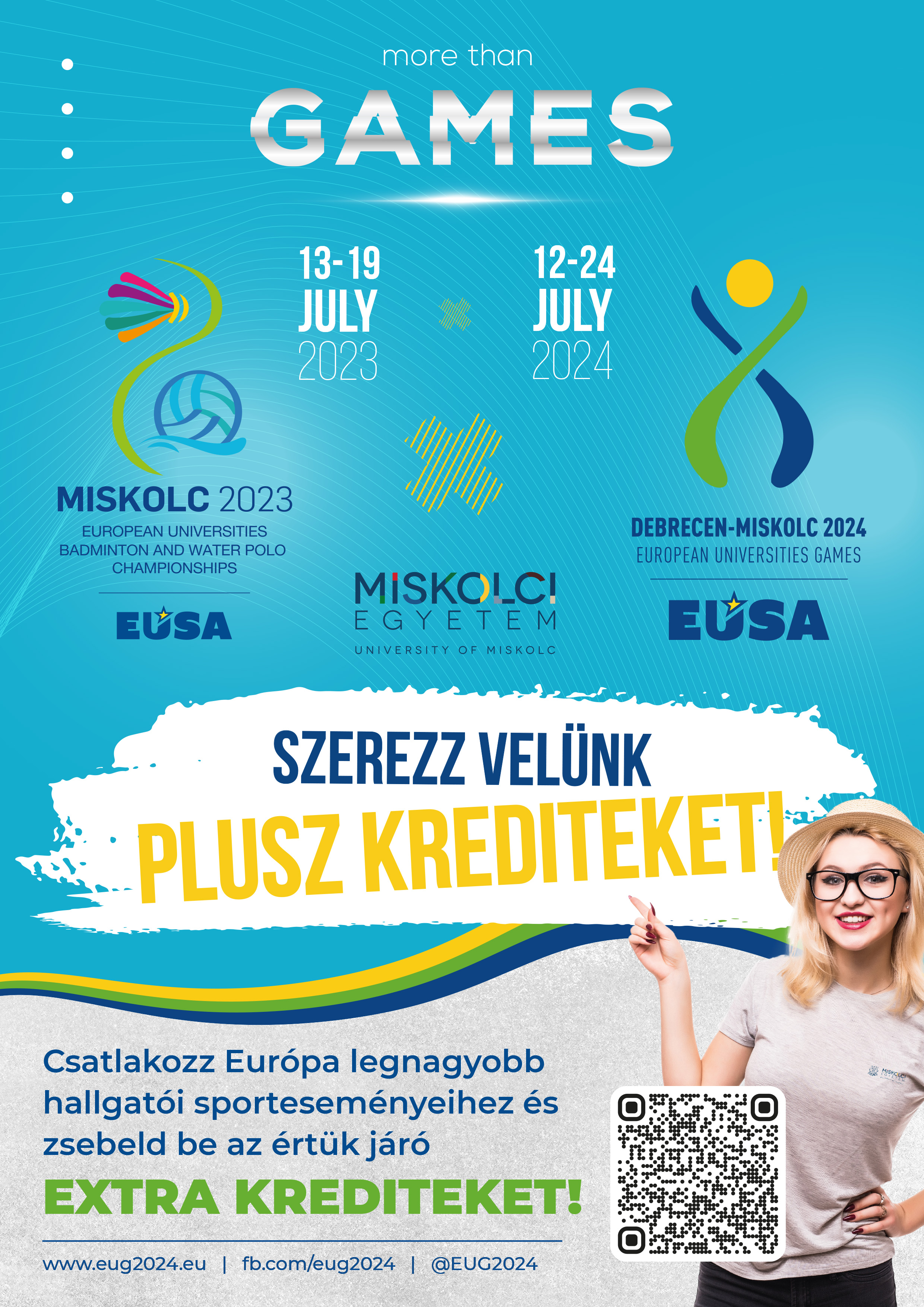 Miskolc és Debrecen ekkor rendezi meg közösen az Európai Egyetemi Játékokat (EUG), melynek az idei Európai Egyetemi Bajnokságok hivatalos teszteseményei. Az EUG a kontinens legnagyobb hallgatói sporteseménye, a nyári olimpia és a labdarúgó-világbajnokság után a harmadik legnagyobb létszámú multisportesemény a világon. Jelentkezz még ma a plusz kreditekért, és legyél részese Európa legnagyobb hallgatói sporteseményeinek!