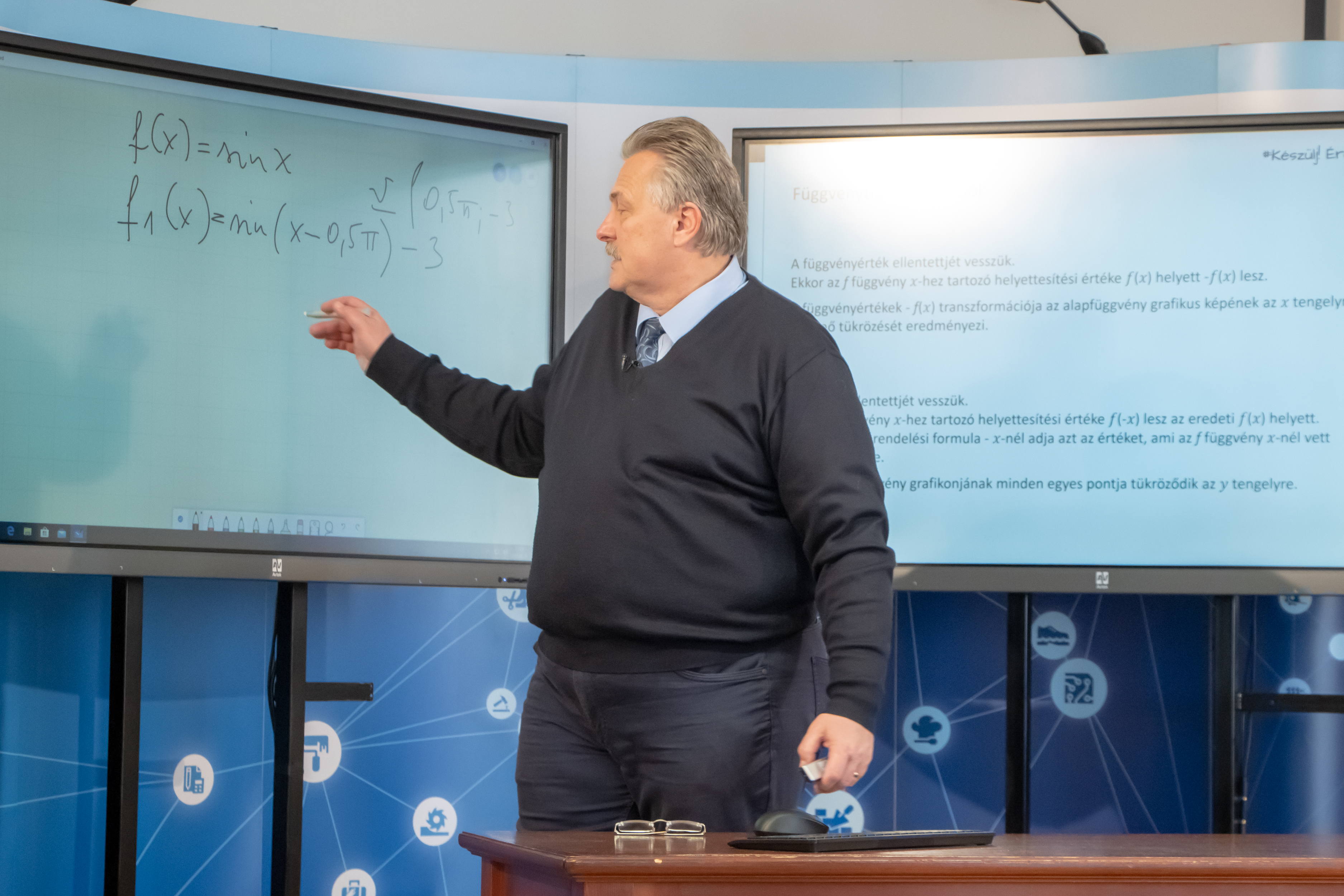 Veres Pál polgármester matematika órát tart a miskolci végzős diákoknak