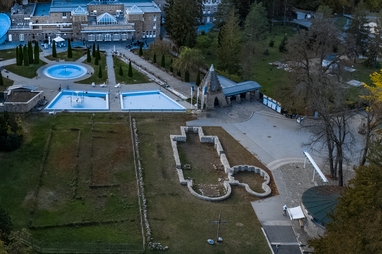 Az apátságot egykor a Miskóc nemzetség alapította a meleg vizű források közelében, és amelynek jelenleg is álló, 120-150 centiméter magas falai évszázadokon át másfél-két méter mélységben feküdtek.