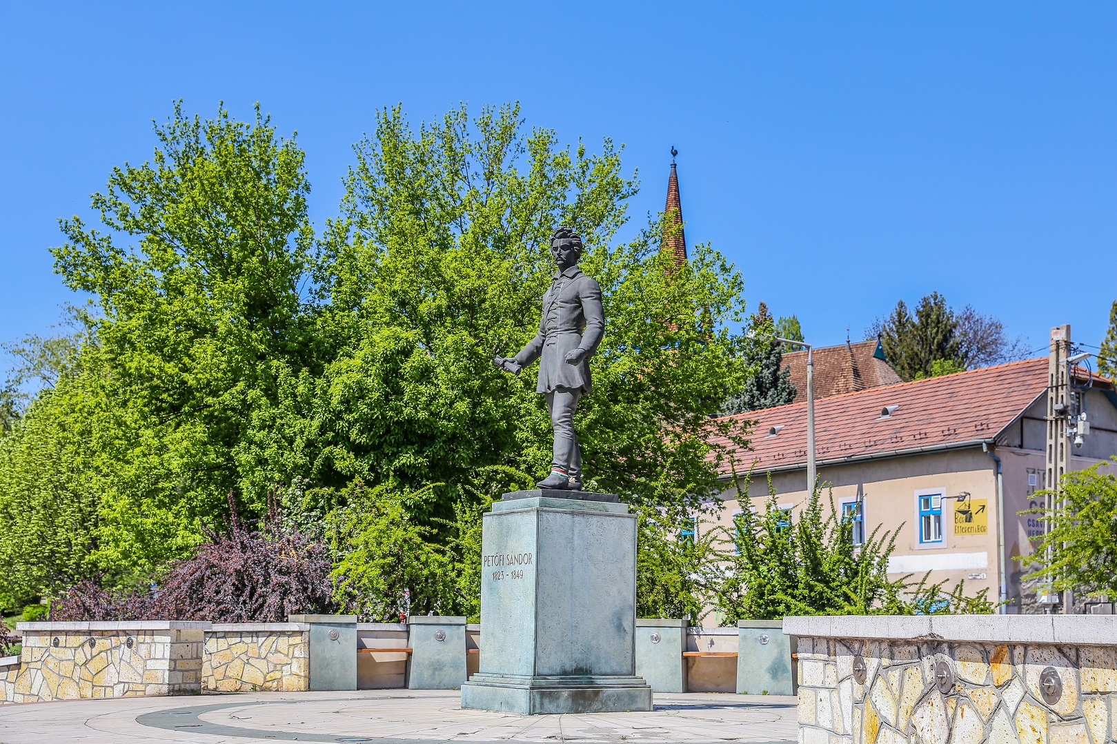 Két részből áll, egyik a Petőfi Sándor szobrára rávezető burkolt tér középen kaszkáddal. A költő az íves lépcsősor tetején áll, a felvezető burkolat érdekes enyhe hullámot formázó folyókákkal lett kialakítva.