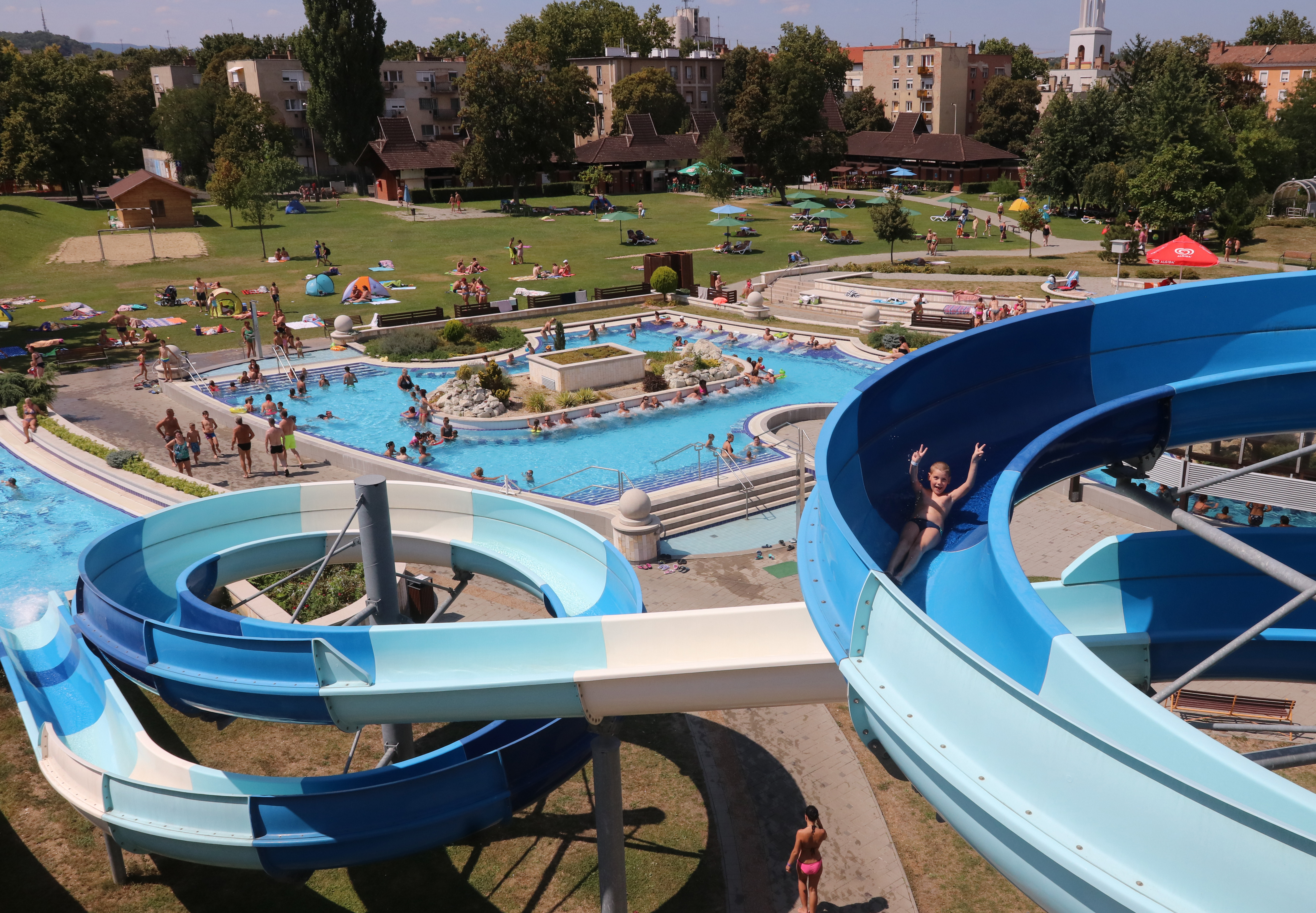 A fürdőkomplexumban kedvére csobbanhat a dögönyözőben, a 3 pályás csúszdamedencében. Úszhat az 50 méteres vagy a 25 méteres tanmedencében. Lazíthat egyet a pezsgőfürdős ülőmedencében, a gyerekeket pedig egy élményelemekkel felszerelt gyermekmedence várja.