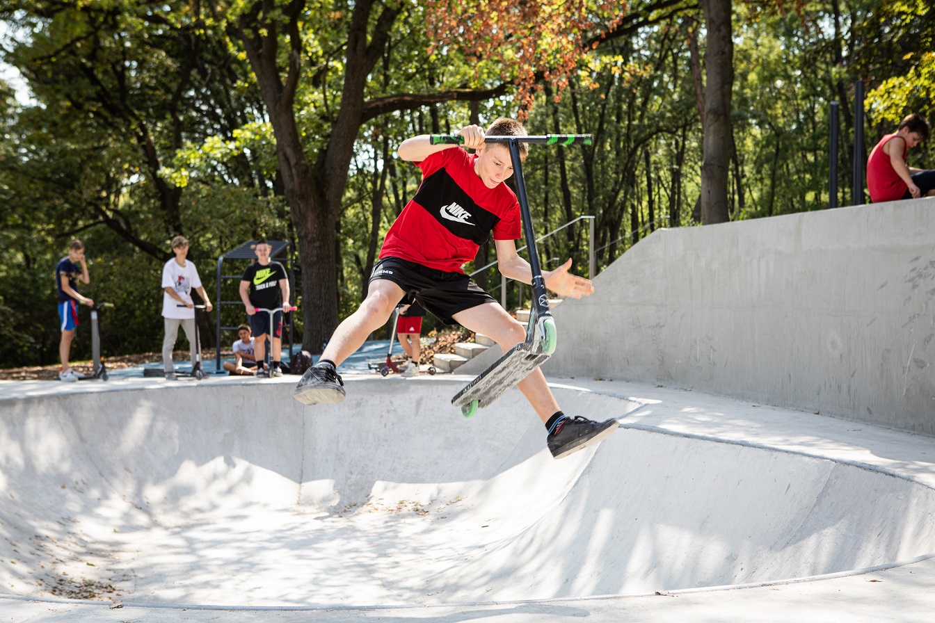 A sportok szerelmesei biztosan szeretni fogják a mászófalat és a szabadtéri kondiparkot, de a bátrabbak kipróbálhatják a földbe süllyesztett skate-pályát is!