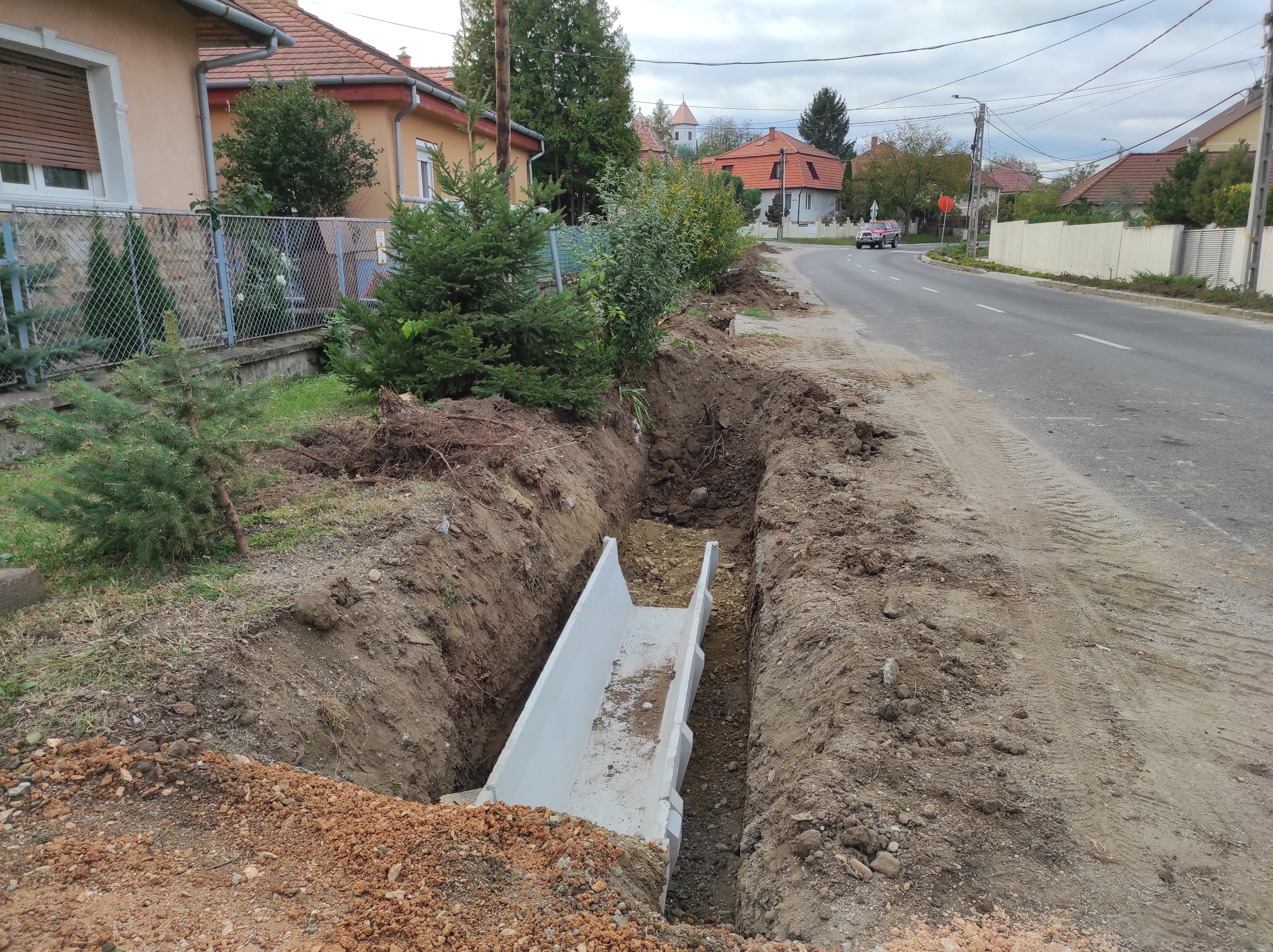 Vájár utca, Aknász utca, Bányamécs utca csapadékvíz-elvezetésének rekonstrukciója. A helyi adottságokat és a terület vízgyűjtő területét figyelembe véve került kialakításra az újraméretezett csapadékvíz elvezető árokrendszer az utcák mindkét oldalán.