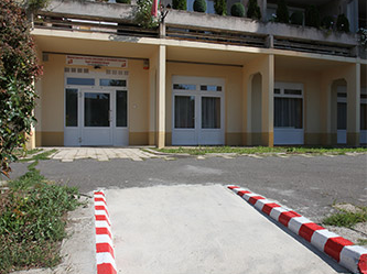 Az akadálymentesség biztosítása érdekében mozgássérült parkoló, bejárati rámpa, akadálymentes WC és színkontrasztos taktilis sávok kerültek kialakításra.