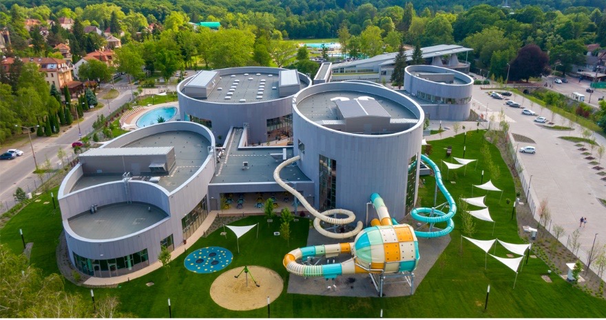- 1.800 m2 a teljes vízfelület (beltéri, kültéri medencék),