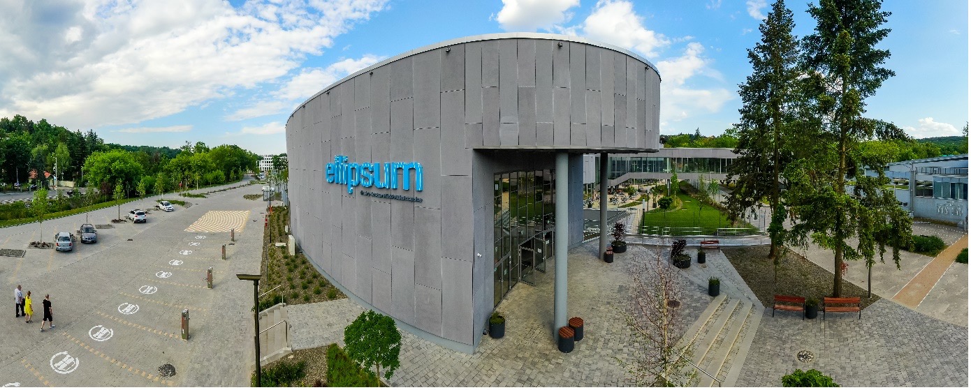 Az ellipszis alaprajzi kialakítású épületegyüttes megjelenése formabontó, ugyanakkor illeszkedik is a szemben lévő épület íves kialakítású teraszához.