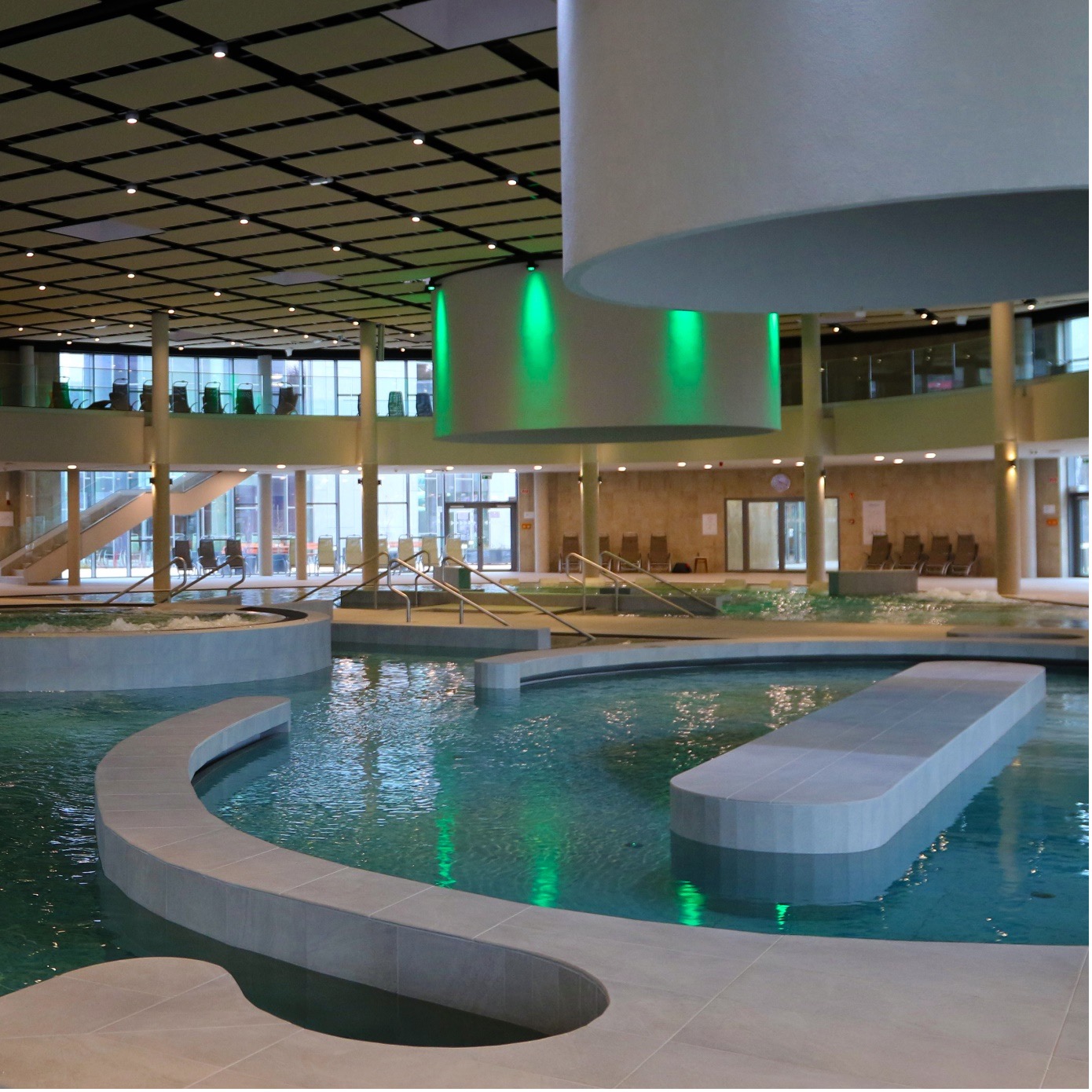 A különböző funkciók több különálló épületben helyezkednek el, a célcsoportok igényeihez igazodva (felnőtt, fiatalok, gyerek és kisebb gyermekek). Az elválasztott terekben mindenki megtalálja az igényének megfelelő csendes, ill. zajosabb, mozgalmasabb fürdési, kikapcsolódási lehetőséget.