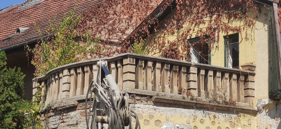 Nemrég tehát kollégáimmal magam is megnéztem a jelenleg folyó bontás helyszínét, a hamarosan eltűnő néhány házat, a kialakuló új teresedést, a leendő utca helyét. Ebben Dozsnyák Péter volt segítségünkre, a kivitelezésben közreműködő cég mérnöke, ő kalauzolt végig a területen.