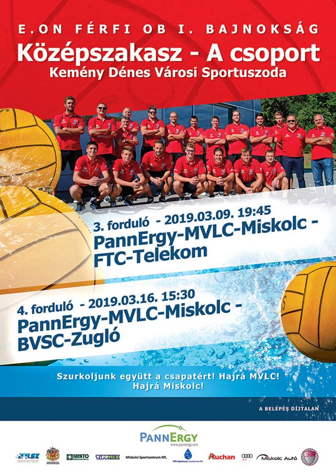 Szombat-szerda-szombat ritmusban folytatódik az OB I-es férfi vízilabda bajnokság középszakasza. A PannErgy-MVLC-Miskolc március 9-én, szombaton, 19.45 órakor az FTC gárdáját fogadja a Kemény Dénes Városi Sportuszodában. dr. Sike József csapata a következő három hazai találkozóján március 16-án a BVSC-vel, március 23-án az Egerrel, április 10-én pedig a Budapest Honvéd együttesével mérkőzik meg.