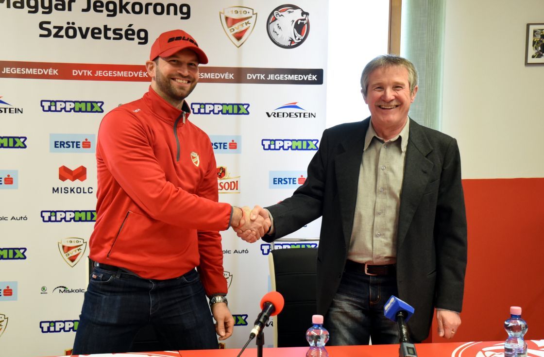 - Eredetileg úgy terveztük, hogy ez a sajtótájékoztató a Tipsport Liga kvalifikációról fog szólni, de az élet úgy hozta, hogy egy másik remek hírt is bejelentünk - kezdte Egri István. - Jankó úgy döntött, hogy elfogadja ajánlatunkat és a következő két évben is nálunk fog játszani. Annak ellenére, hogy mindenki tudja, hogy Jankó mögött milyen pályafutás áll - illetve remélhetőleg még remek évei lesznek velünk - had mondjak pár szót róla. Ő egy olyan személyiség, aki ideális minden edző és csapat számára. Vezéregyéniség az öltözőben és a jégen is. Az idei évben azt is bebizonyította, hogy a Tipsport Ligában is egy kiemelkedő játékos. Meglehet, hogy nem a mi játékosállományunk a legjobb a ligában, de a legnagyobb értékünk, hogy egy rendkívül jó közösséget alkotunk. Ehhez a közösséghez építőelemek kellenek, Jankó ennek tökéletesen megfelel. Rendkívüli büszkeséggel tölt el, hogy a magyar válogatott csapatkapitánya továbbra is nálunk folytatja a pályafutását. A következő két évben biztosan a Tipsport Ligában fogunk játszani és immár az is biztossá volt, hogy ezt Vas Jánossal a sorainkban tehetjük. Kívánom neki, hogy a tizenkét A csoportos mérkőzésszámát tovább tudja növelni, ezért sok sikert kívánok neki a közelgő Világbajnokságra.