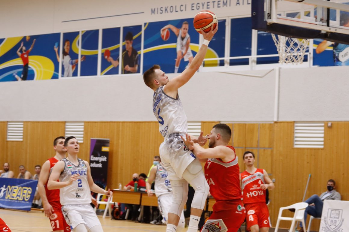 A férfi kosárlabda NBI/B Piros-csoportjának 22. fordulójában a rájátszás egyik nagy esélyesét, a Veszprémet fogadta a MEAFC-Miskolc. A vendéglátók végig remek teljesítményt nyújtva értékes győzelmet arattak a Miskolci Egyetem Körcsarnokában lejátszott találkozón.