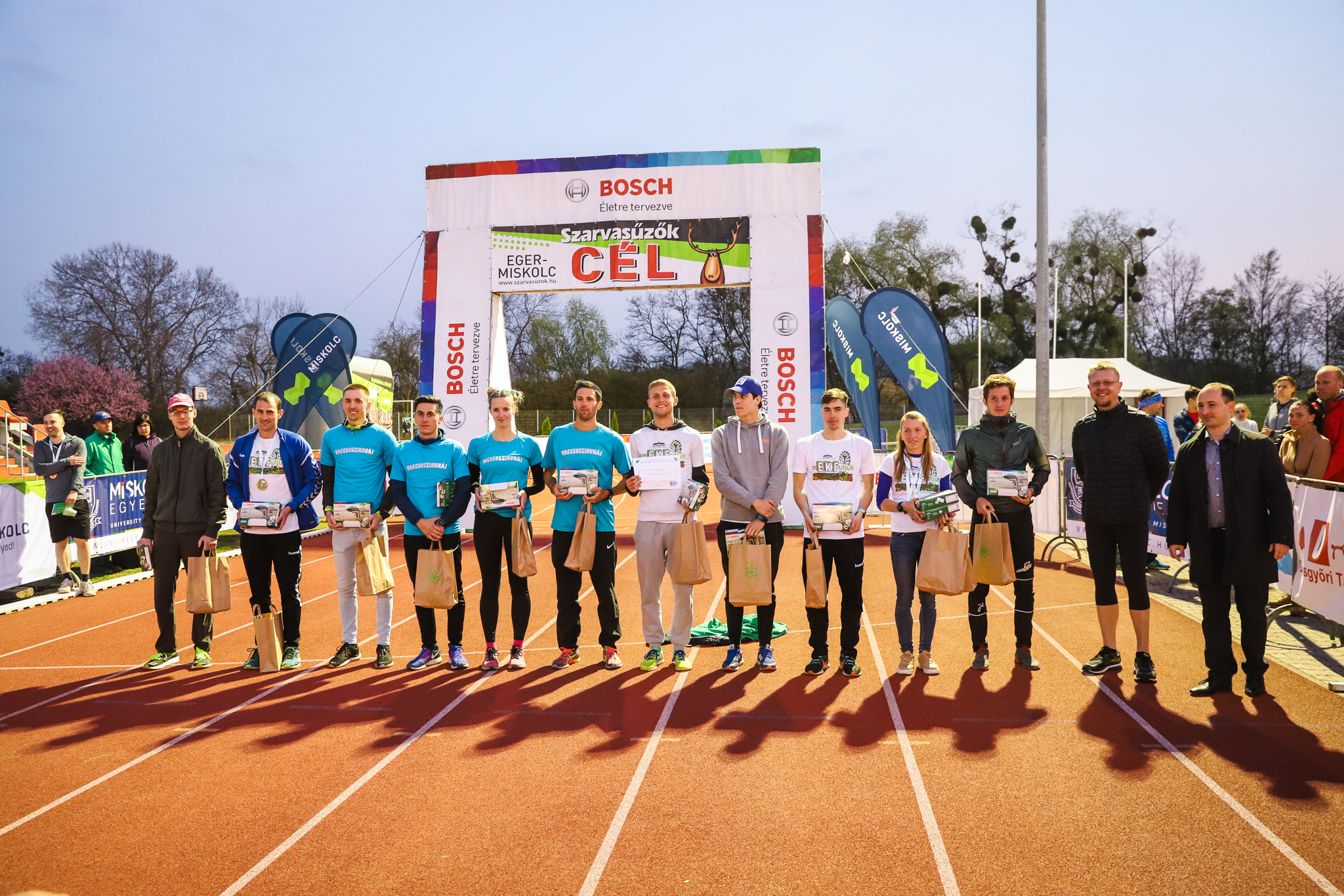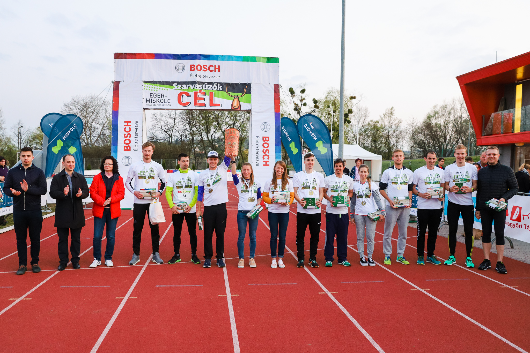 A 29. Bosch Szarvasűzők-váltófutóverseny utolsó újraindítása Miskolcon, a Hősök terén történt meg. A befutóemberek a Miskolci Road Cycling Club (MRCC) sportolóinak felvezetésével, - Déryné u. - Kandia köz - Szemere Bertalan u. - Görgey Artúr u. - Csabai kapu – Jászi Oszkár út – Ifjúság út – Középszer utca – Szentgyörgy út - Miskolctapolcai u. érintése után érkeztek meg a Miskolci Egyetemre, egész pontosan a Miskolci Atlétika Centrum atlétikai pályáján kijelölt célba.