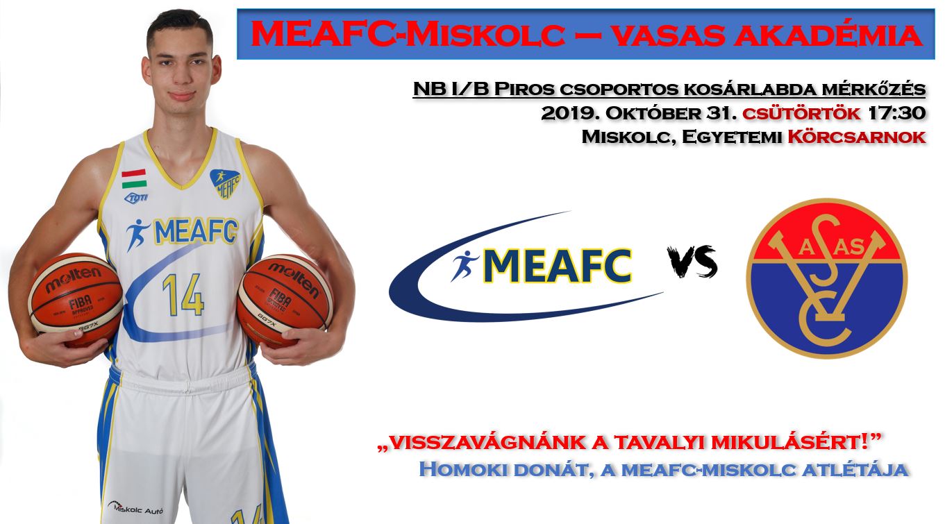 Két győzelem után három vereséget szenvedett el zsinórban a MEAFC-Miskolc NB I/B-s kosárlabda csapata. Az egyetemisták jó rajtját beárnyékolta legjobbjuk, az amerikai Thornton sérülése, akinek hányát nem tudták eredményesen pótolni. Az október 31-én, csütörtökön, hazai környezetben következő találkozón kellene javítaniuk a mérlegen.