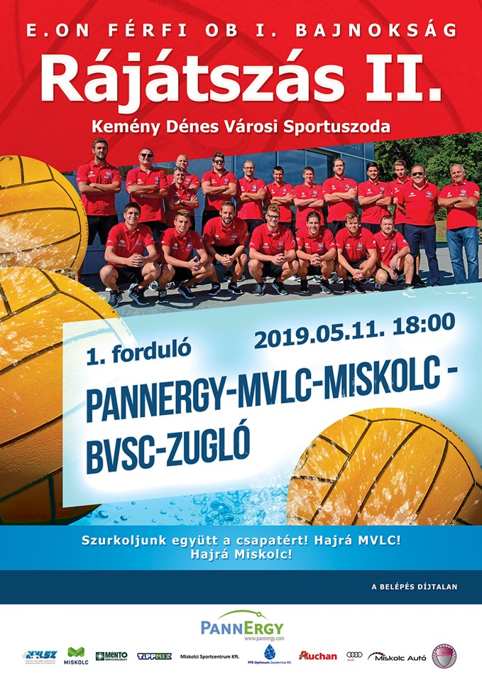 A BVSC-Zugló ellen játszik május 11-én, szombaton a PannErgy-MVLC-Miskolc felnőtt férfi vízilabda csapata. A bajnokság 5. helyéért vívott helyosztó első felvonása 18 órakor kezdődik a Kemény Dénes Városi Sportuszodában. A párharc az egyik alakulat második sikeréig tart.