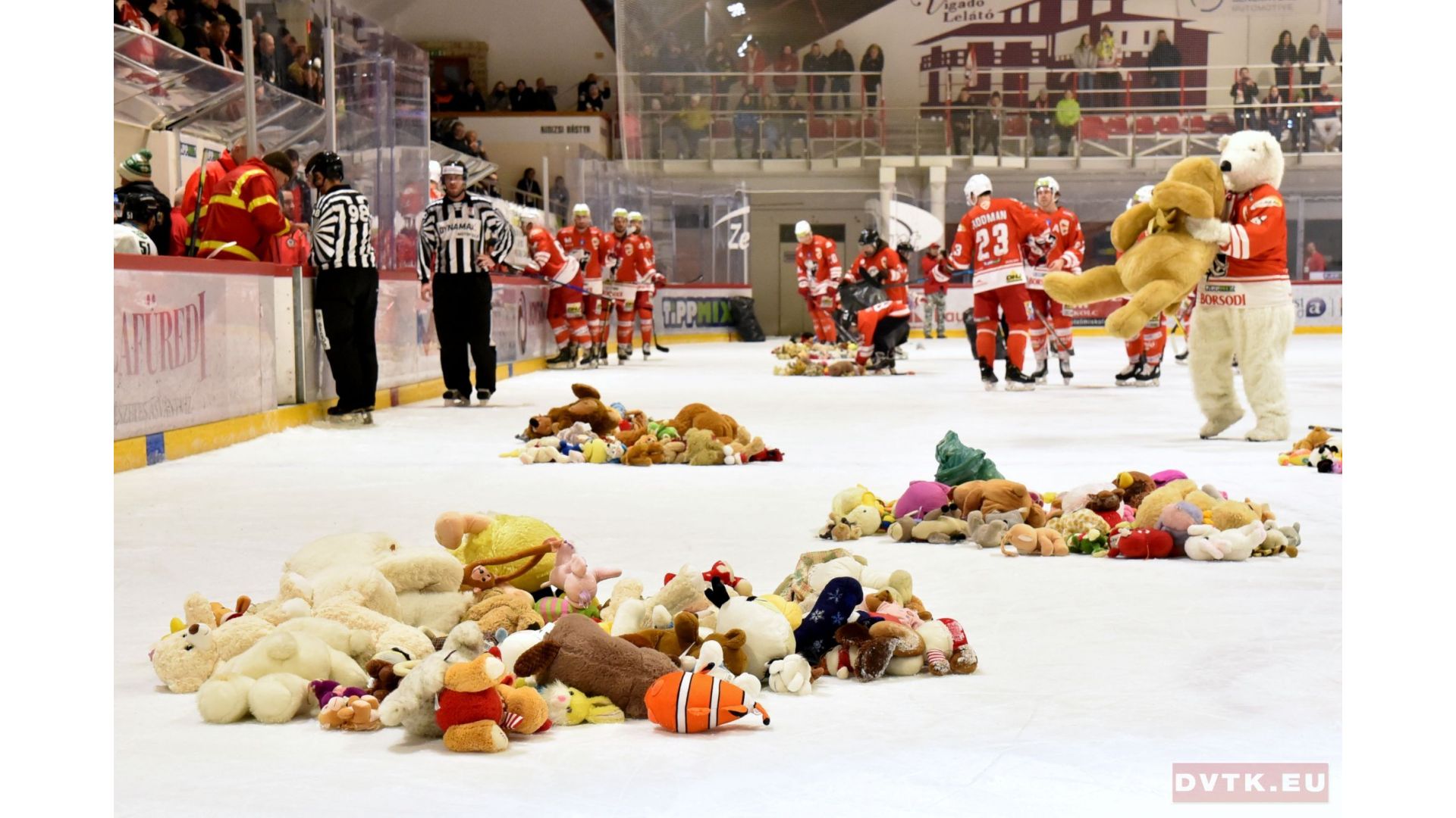 A DVTK Jegesmedvék izgalmas mérkőzésen, nagy fordulatok után, büntetőlövésekkel győzte le a HC Nové Zámky együttesét a két csapat december 8-án, vasárnap esti találkozóján. A meccs első gólját Részegh Tamás szerezte, ami után érkeztek a plüssállatok a jégre, majd az érsekújvári csapat háromszor is vezetett. A rendes játékidő vége előtt négy másodperccel Vandane egyenlített, a büntetőlövések során pedig Harrison találata volt a döntő.