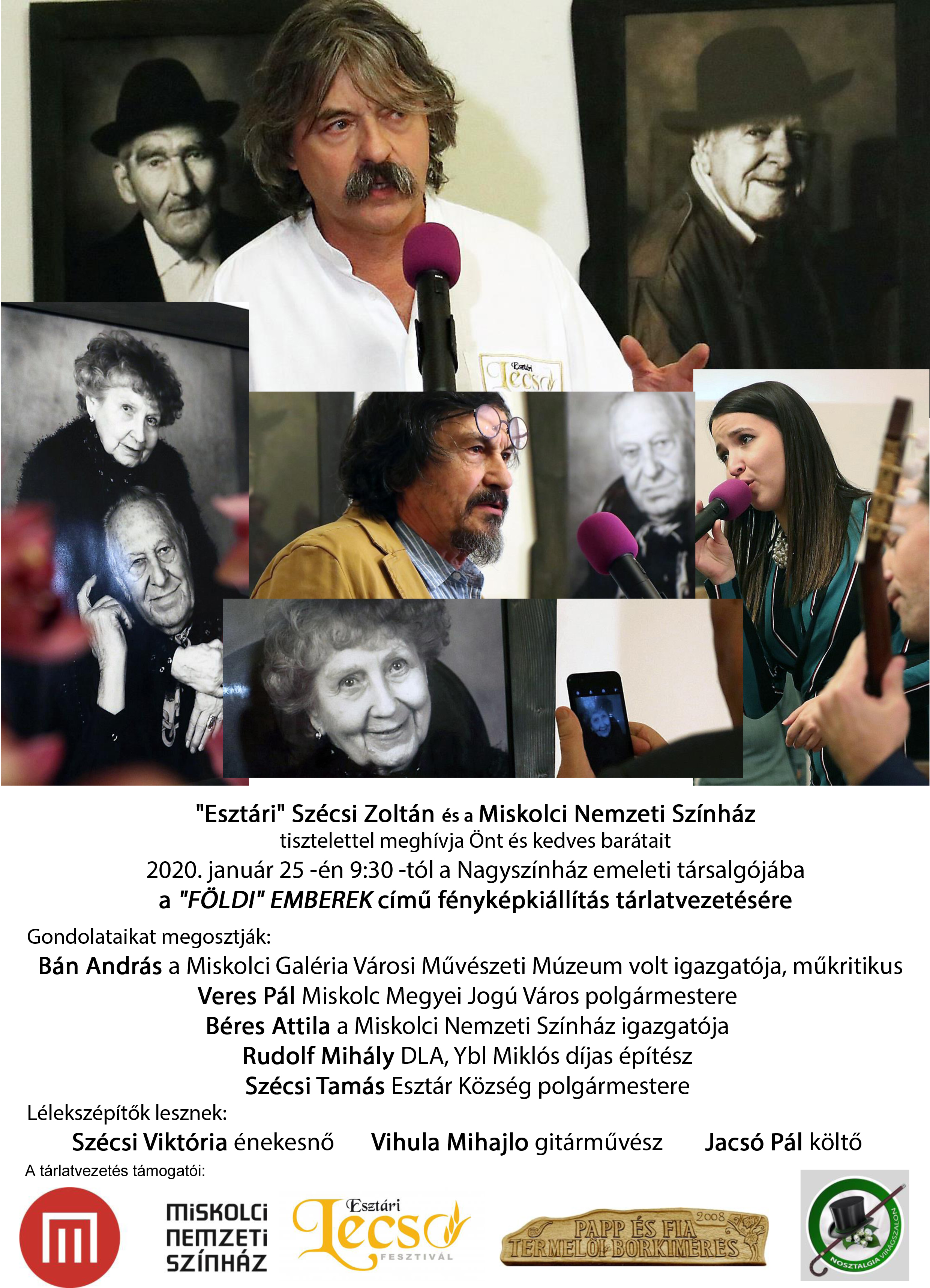 „Esztári” Szécsi Zoltán fotóművész alkotásaiból nyílik tárlatvezetéssel egybekötött kiállítás a Miskolci Nemzeti Színház emeleti társalgójában „FÖLDI EMBEREK” címmel.