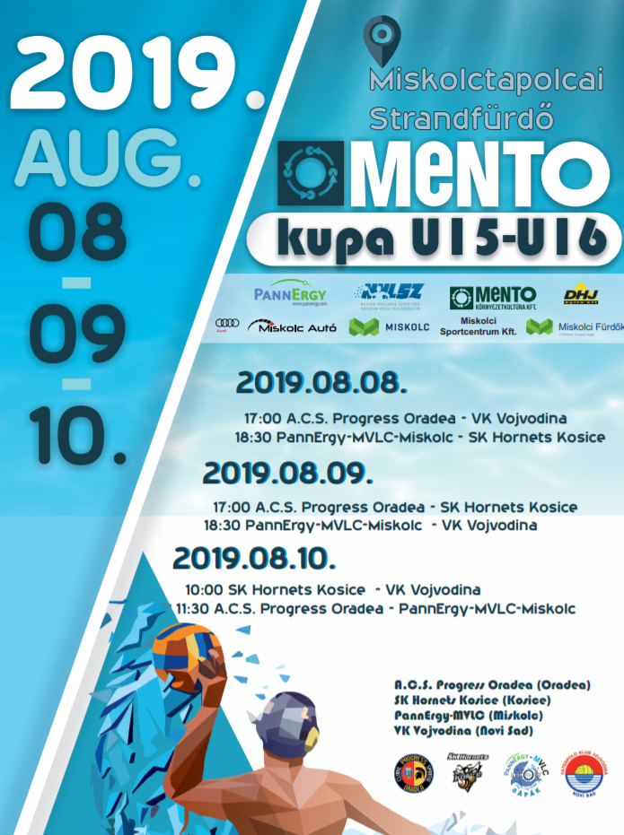 A Miskolctapolcai Strandfürdőben augusztus 8-10. között rendezik meg a IV. Mento Kupa elnevezésű vízilabdatornát, melyen ezúttal, a házigazda PannErgy-MVLC-Miskolc mellett, külföldi utánpótlás (U15-U16-os) klubcsapatok vesznek részt.