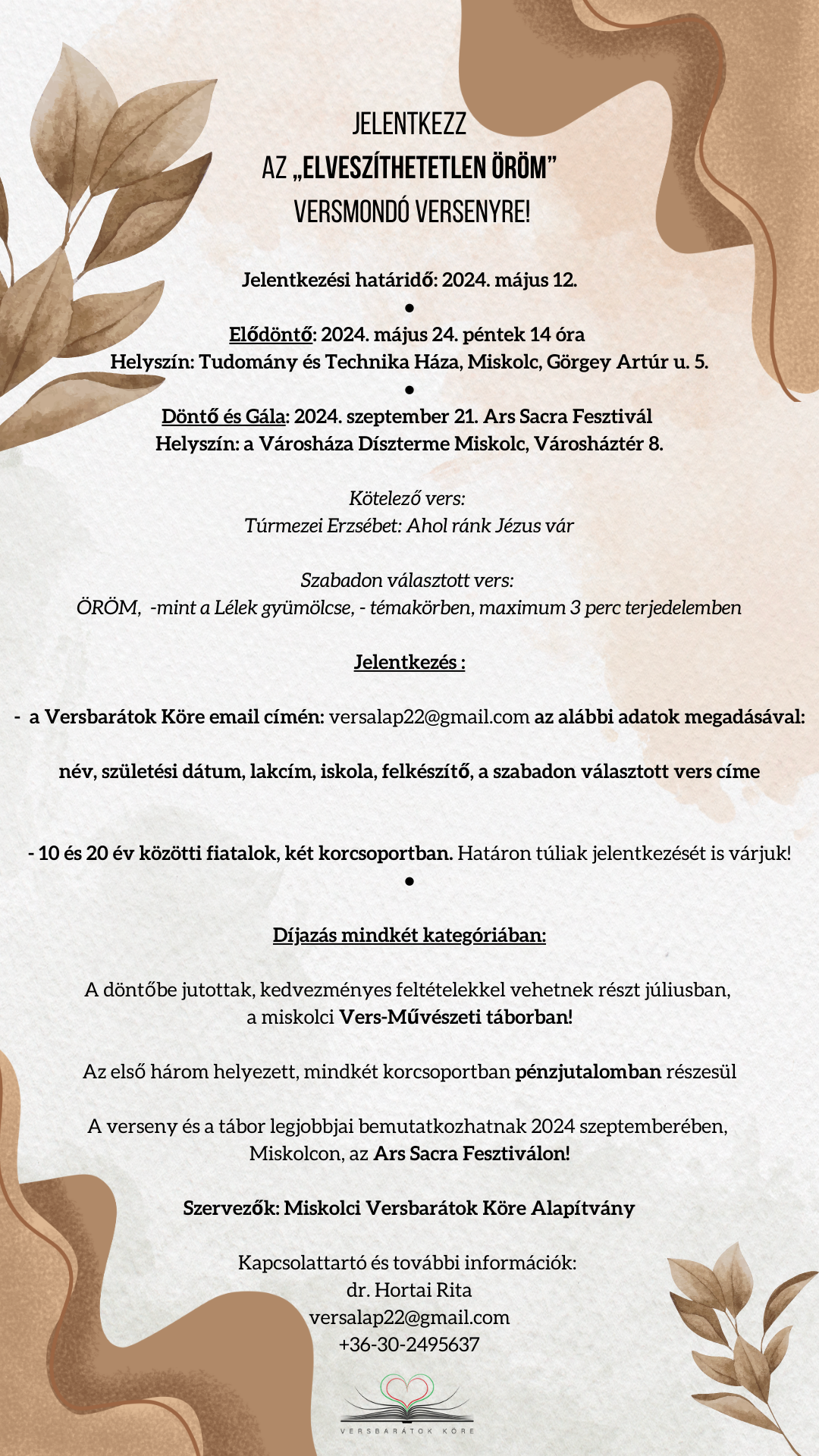 Jelentkezés az „Elveszíthetetlen öröm” című versmondó versenyre