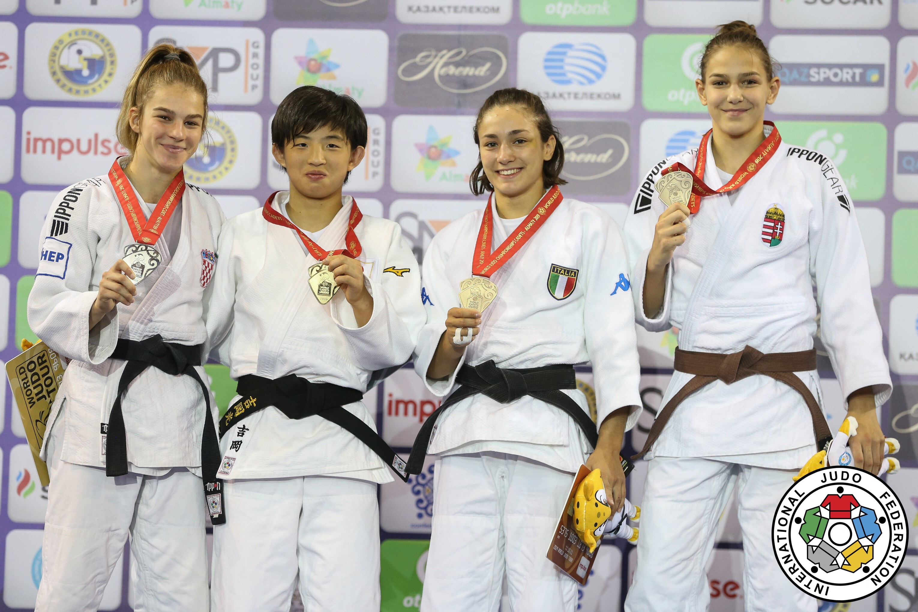 A kazahsztáni Almaty városában zajló ifjúsági judo világbajnokság szeptember 26-i, csütörtöki versenynapján szép miskolci siker született. A Bartha Ákos által felkészített Kriza Anna (jobbról), az MVSC-Miskolci Sportiskola versenyzője a 48 kg-os súlycsoportban első mérkőzésén az indiai Thangjam Tababi ellen wazarival nyert, majd a második körben ipponnal verte a kazah Yerezhepova Aruzhan-t. A harmadik összecsapáson a horvát Puljiz Anna jobbnak bizonyult a miskolci sportolótól, aki azonban ezt követően ipponnal nyert az idei korosztályos Eb-ezüstérmes portugál Brito Raquel ellen, így eljutott az éremcsatáig. A bronzmeccs szintén a kiváló formát mutató Kriza Anna ippon-győzelmével ért véget, a szenvedő fél ezúttal a brazil Nascimento Alexia volt.