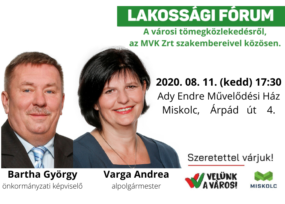 Varga Andrea alpolgármester, és Bartha György önkormányzati képviselő az MVK zrt. szakembereivel közösen lakossági fórumot tart..