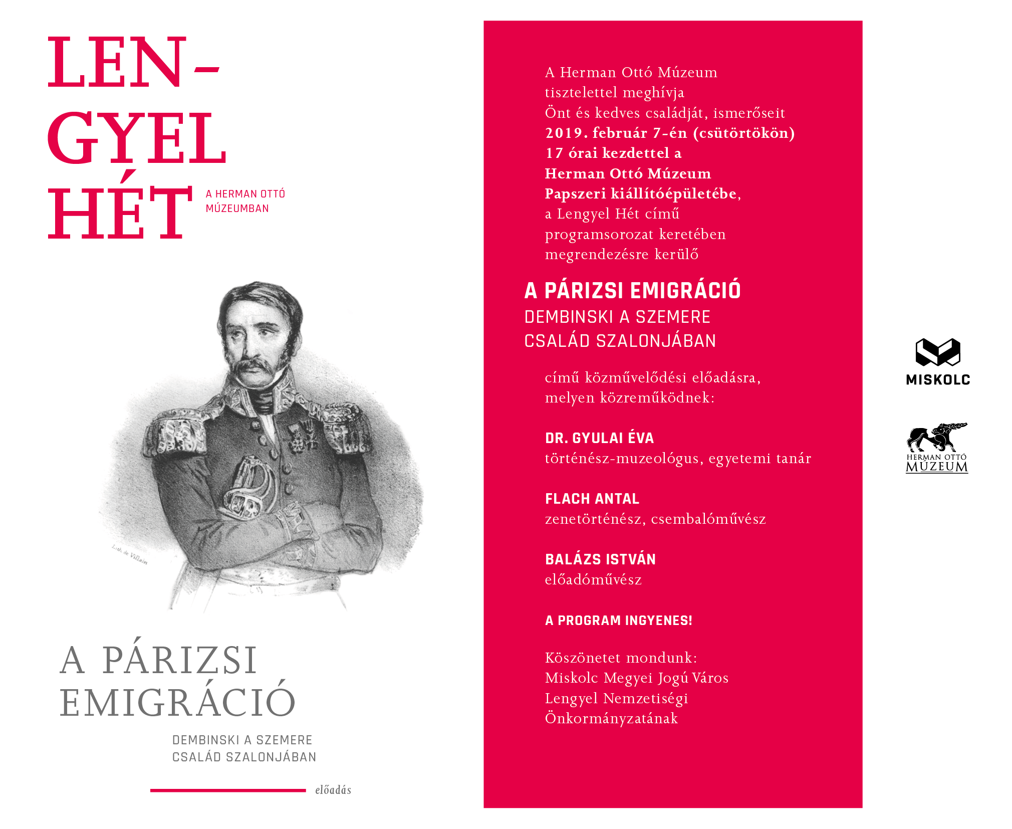 A Herman Ottó Múzeum a Lengyel Hét című programsorozata keretében megrendezésre kerülő közművelődési előadására tisztettel vár minden érdeklődőt, melynek címe: