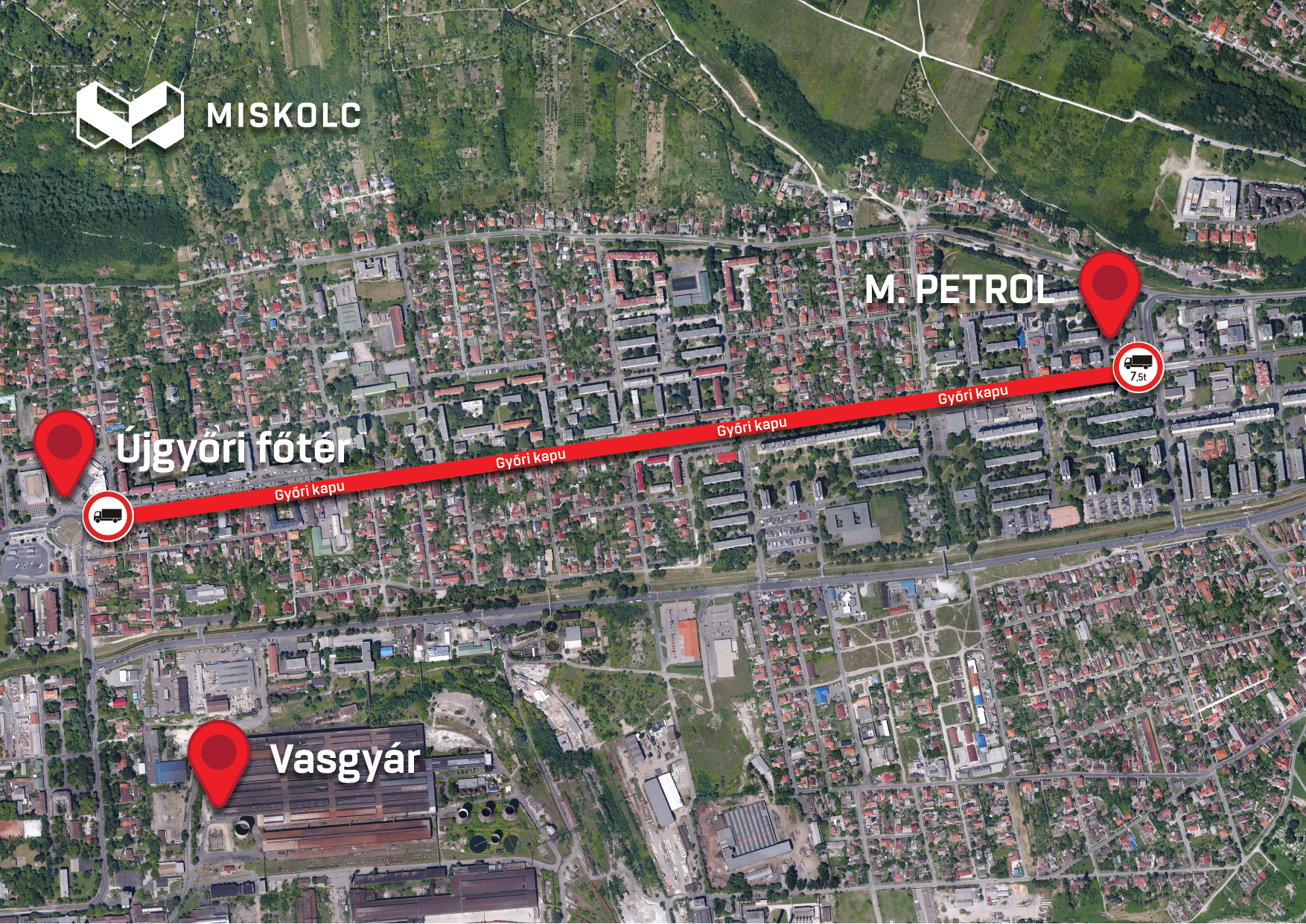 2023. december 18-án (hétfő) 7:00-tól a Győri kapu Thököly Imre utca – Újgyőri főtér közötti szakaszára a Thököly u. felől 7,5 t össztömeget meghaladó tehergépjárművel ismét csak a közútkezelő hozzájárulásával szabad behajtani, az Újgyőri főtér felől tehergépjárművek számára – a korábbi forgalmi rendnek megfelelően – a behajtás tilos lesz.