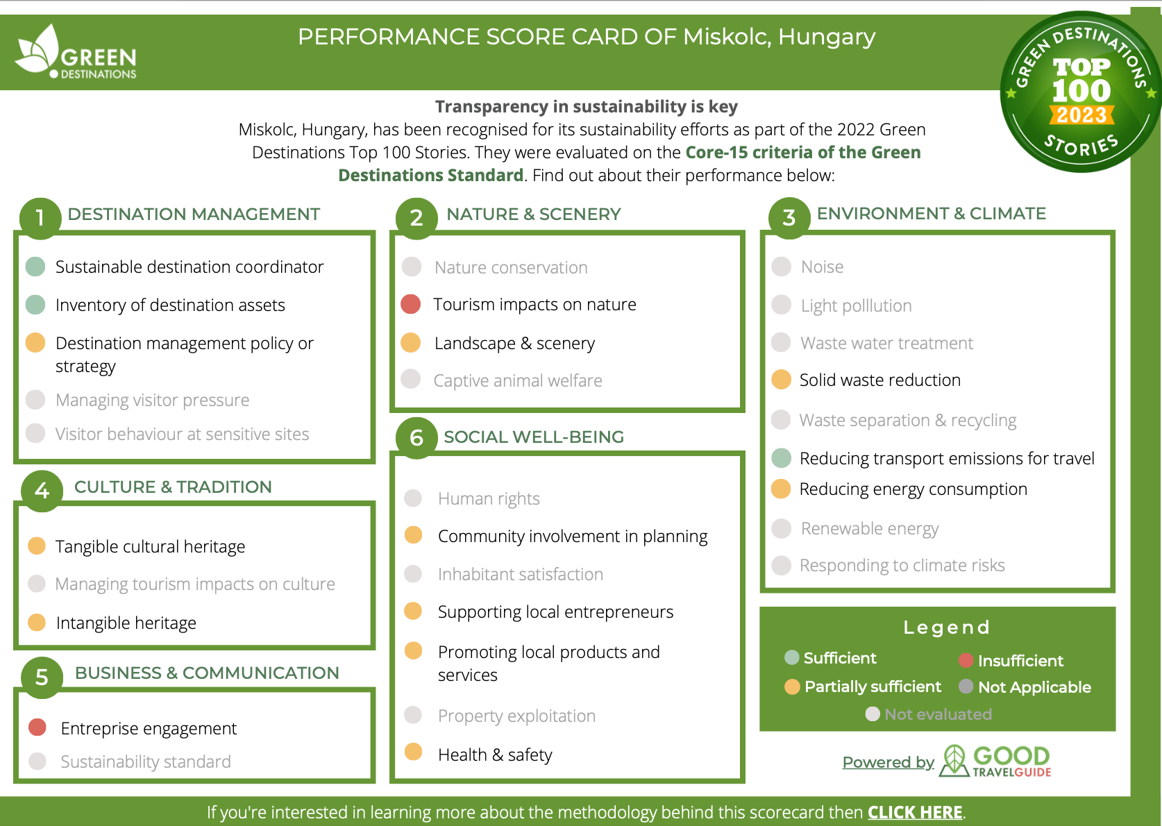 Miskolc pályaműve is bekerült a fenntartható turizmussal foglalkozó Green Destinations verseny TOP 100 legjobb gyakorlata közé.
