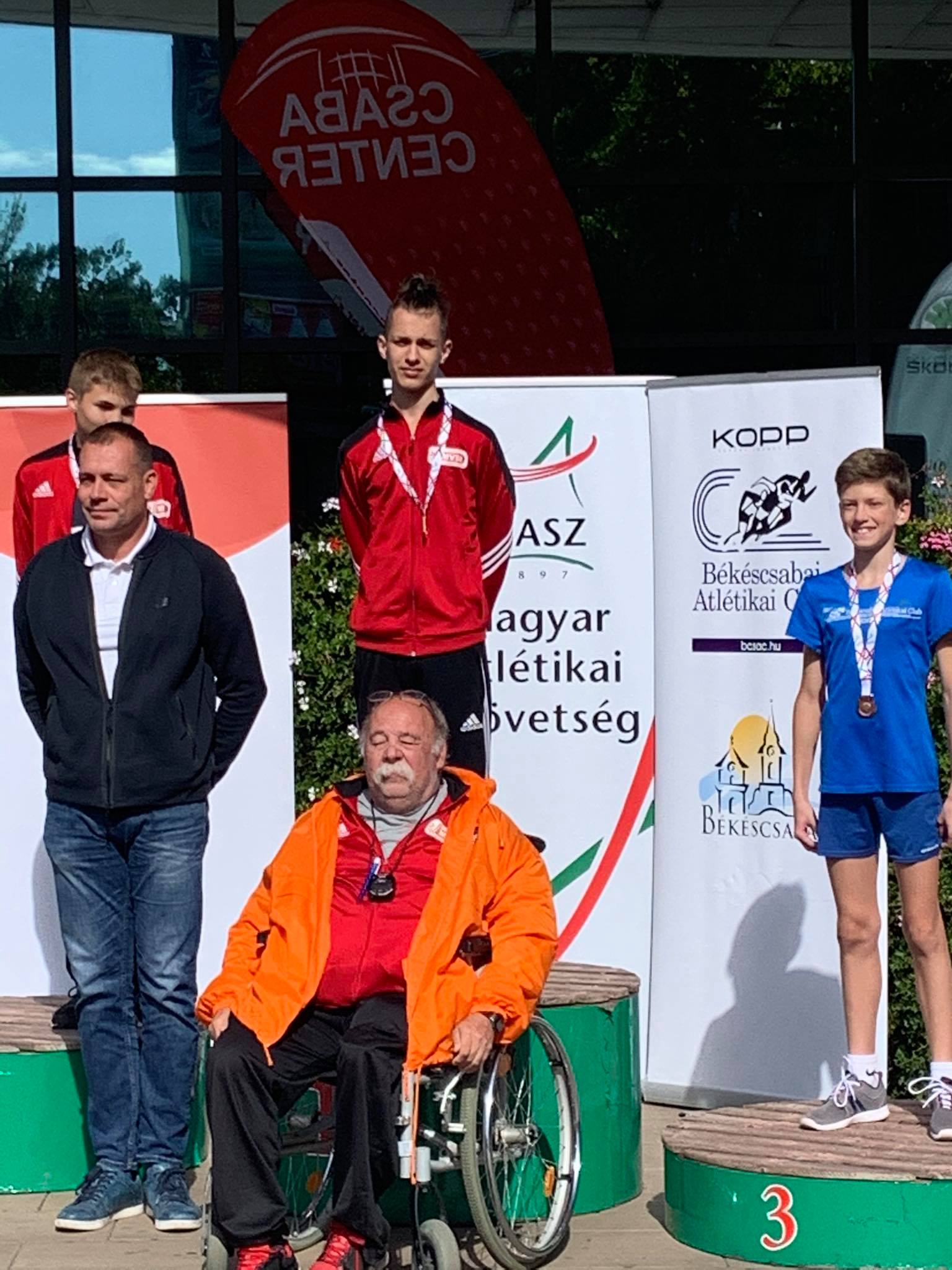 KÉPALÁÍRÁS: A dobogó tetején Kocsis Bernát Bendegúz, mellette Majoros Máté. Elől: Gyulai Miklós, a Magyar Atlétikai Szövetség elnöke és Szűcs József , a Miskolci Sportiskola gyalogló szakágvezetője.