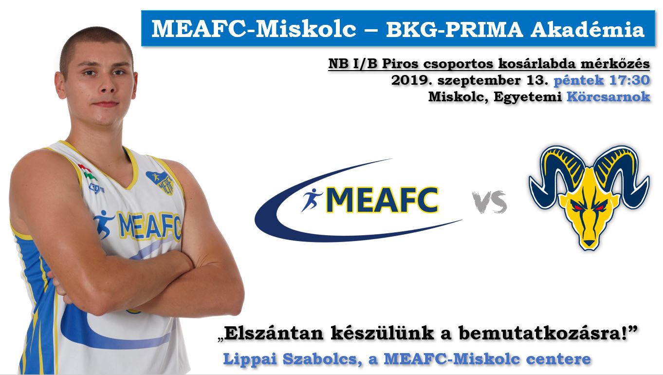 A férfi kosárlabda NB I/B Piros-csoportjának egyik favoritja érkezik szeptember 13-án, pénteken a Miskolci Egyetem körcsarnokába. A bajnoki nyitányon a házigazda MEAFC-Miskolc 17.30-tól csap össze a BKG-PRIMA Akadémia gárdájával.