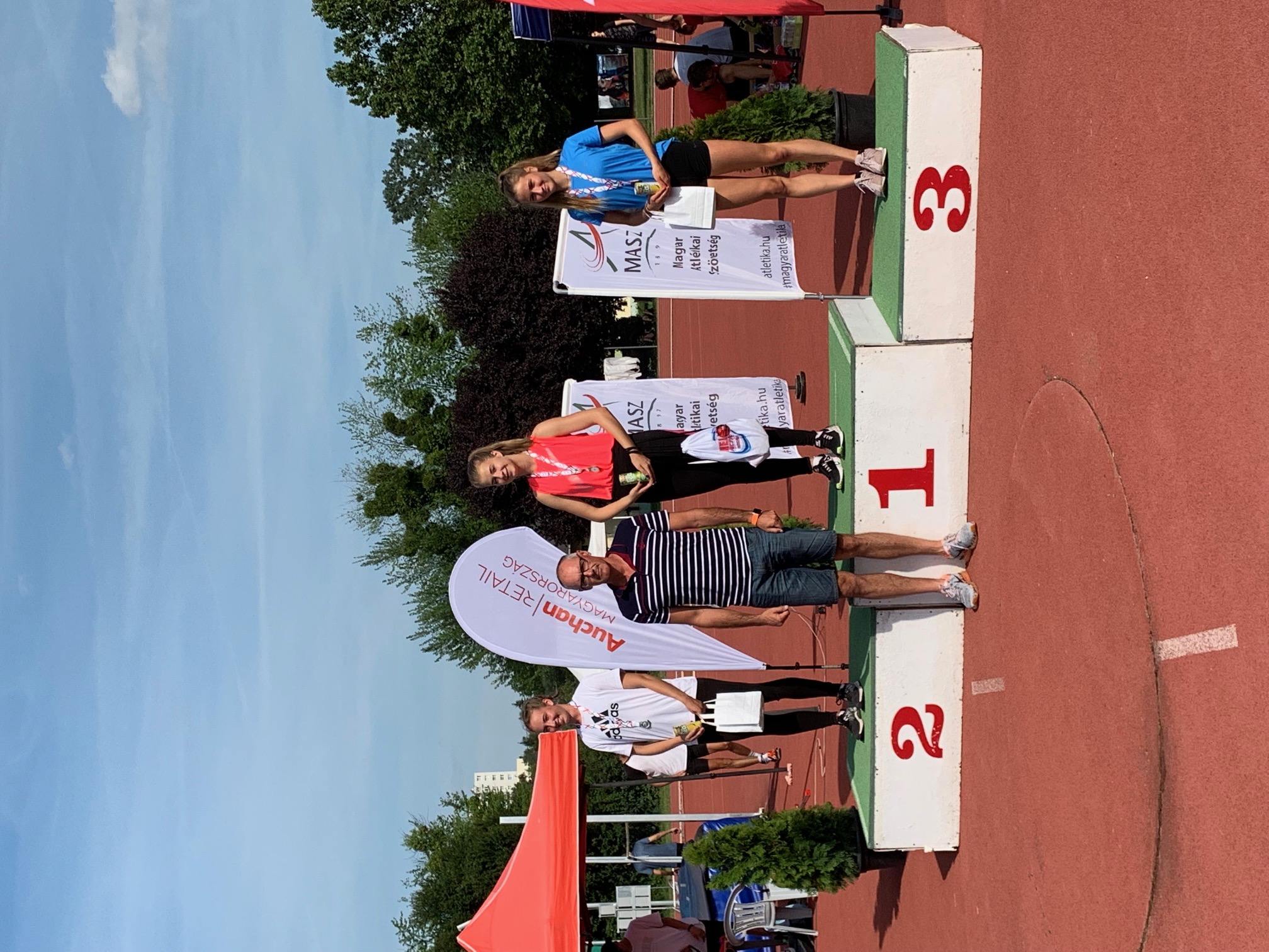 Tóth Anna (középen), a 100 m gát ifjúsági bajnoka, Miskolc legújabb európai ifjúsági olimpikonja és edzője, Tigyi József.
