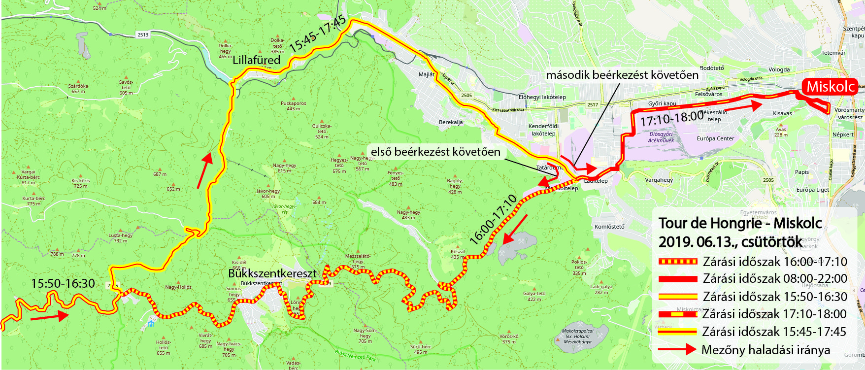 A kerékpárverseny miatt Miskolc több pontján is nehézkessé válik a közlekedés, lesznek olyan utak, amit hosszabb időre lezárnak majd, de a szervezők arra buzdítanak mindenkit, hogy közlekedő helyett szurkolóként vegyen részt ezen a rendkívül látványos nemzetközi sporteseményen. Jó példát mutatnak ehhez a külföldi nagy kerékpáros versenyek, ahol a pálya mellett izgul és szurkol a város nagy része.