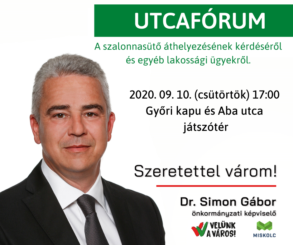 Dr. Simon Gábor a 13-as választókerület önkormányzati képviselője utcafórumot tart.