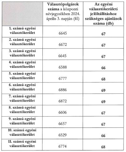 Választási hirdetmény - az egyéni választókerületi jelölt, valamint a polgármesterjelölt állításához szükséges ajánlások számáról
