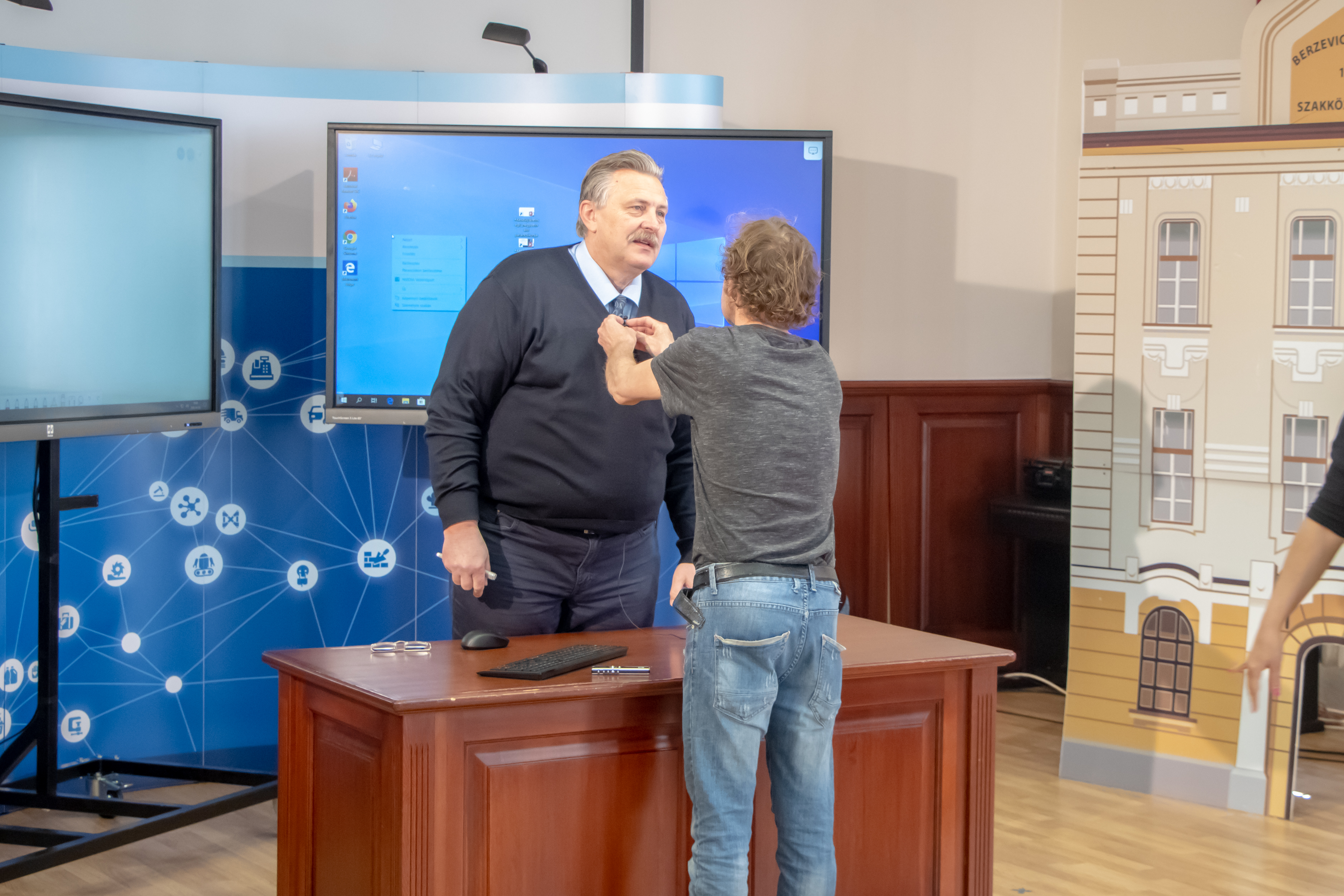 Veres Pál polgármester matematika órát tart a miskolci végzős diákoknak