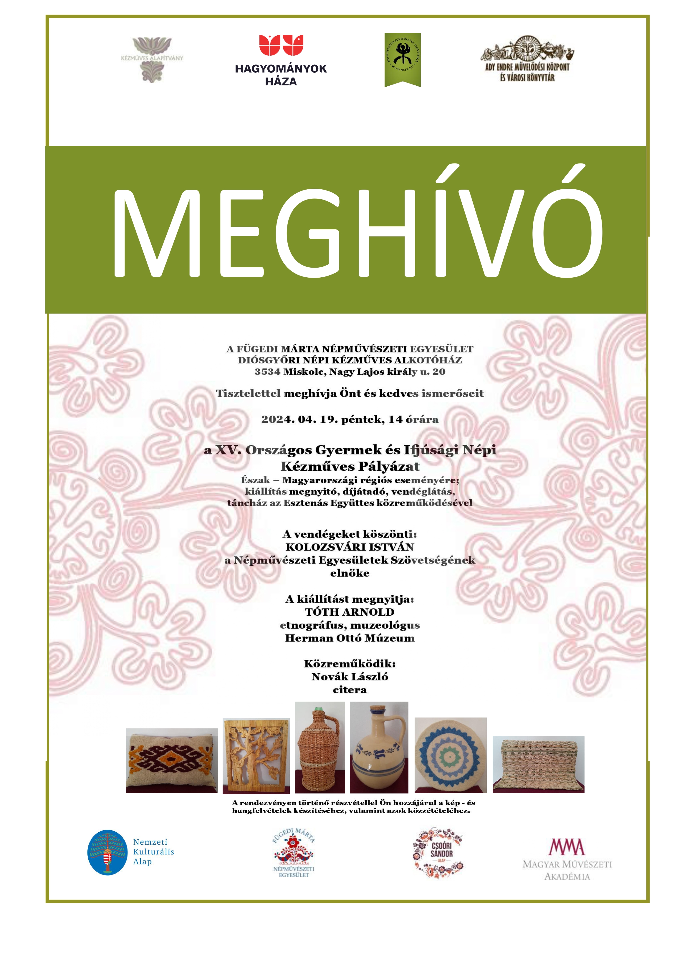 XV. Vándorlegény Országos Gyermek és Ifjúsági Népi Kézműves Pályázat (kiállításmegnyitó és díjátadó - 2024. április 19.)