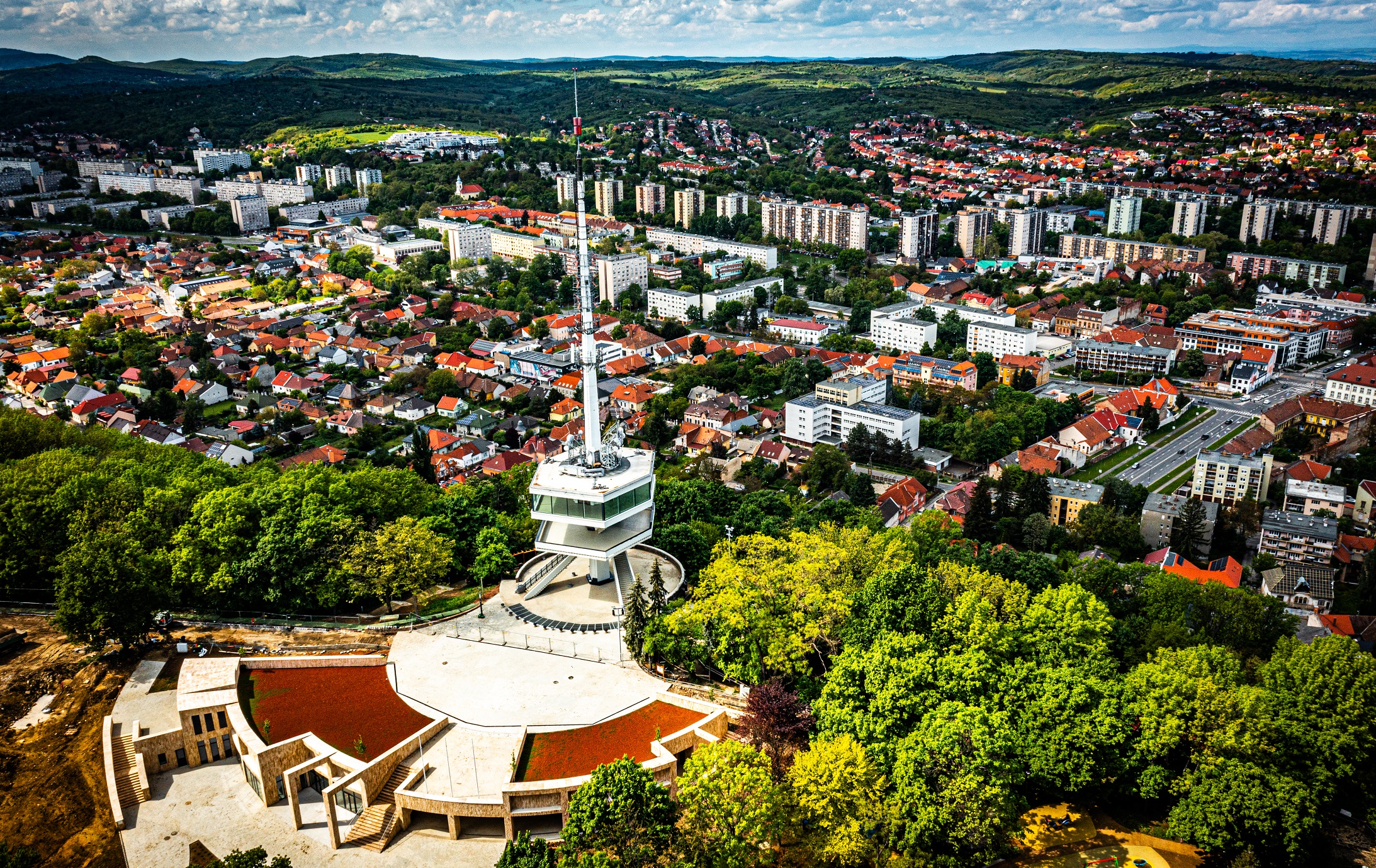 A ma ismert, tévétoronyként is működő kilátót Hofer Miklós és Vörös György tervei alapján építették, majd avatták fel ünnepélyes keretek között 1963. augusztus 20-án. A tervező zsenialitását mutatja, hogy a multifunkciós épületet egyszerű, mégis egyedi formába öntötte; a kilátó úgy vált országosan ismert jelképpé, hogy annak sziluettje néhány vonallal ábrázolható.