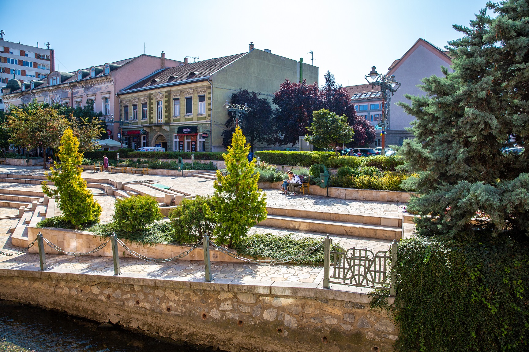 A tér teraszos kialakítású lépcsőin lehet lejutni a patak mesterséges partjához és vízeséséhez, melyet a Szinva megemelt vízszintjével alakítottak ki. A téren áll Kutas László szobrászművész Miskolci lányok szobra, mely kedvelt a fényképezkedők körében.