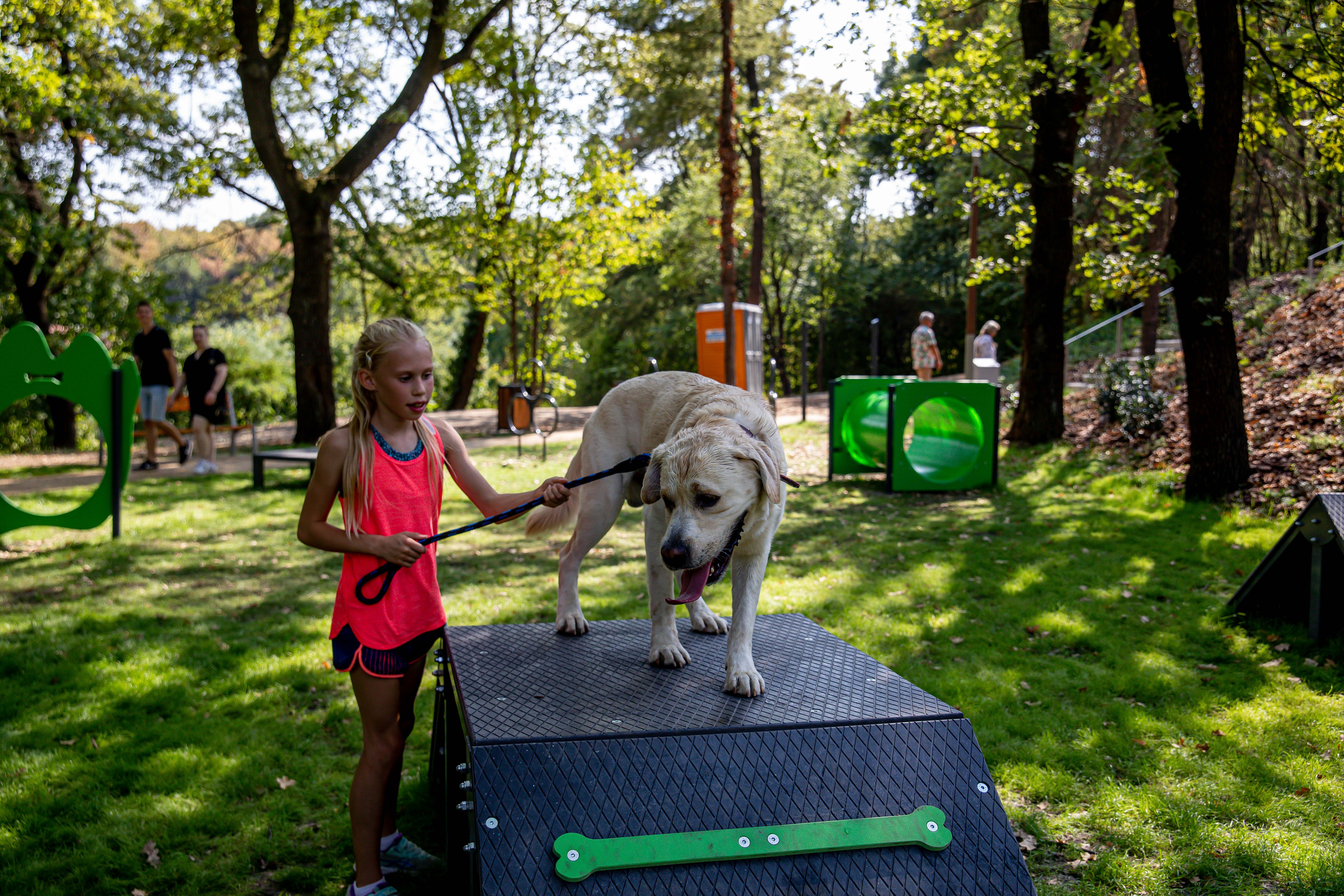 A kiskedvenceikkel érkezők örömére elkerített kutyaügyességi pálya, kutyafuttató is épült.