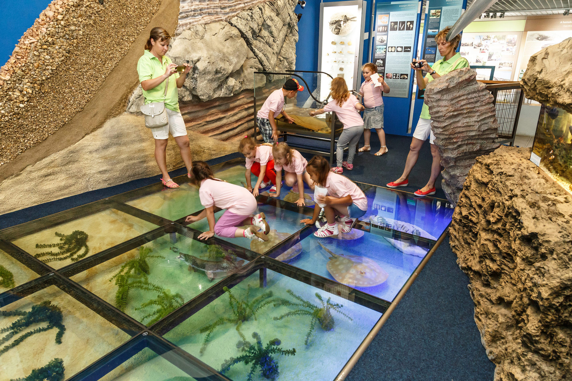 A Pannon-tenger Múzeum állandó kiállításai igazi természettudományos játszótérként várják a gyerekeket és a felnőtteket egyaránt. Az Őserdei ösvényeken című tárlat egy titkokkal teli ősi világba kalauzolja el a látogatókat. Két emeletnyi leletanyag és korhű illusztráció tárja az érdeklődők elé a miocén földtörténeti kort. Játékos és interaktív élményelemek segítségével a vendégek is részesei lehetnek a 7 millió éves mocsárciprusok letűnt világának. A Dinók Földjén a dinoszauruszok korába, a mezozoikumba kalauzolja el a látogatókat. Az őslények mindennapjai a SAURUCARIA expedíció időutazása révén ismerhetők meg egyedi, „steampunkos” látványvilágra építve. A Kárpátok ásványai állandó kiállítás mintegy 140 m2 összterületen, ezer válogatott példányon keresztül mutatja be a hegységrendszer ásványvilágát földrajzi bontásban.